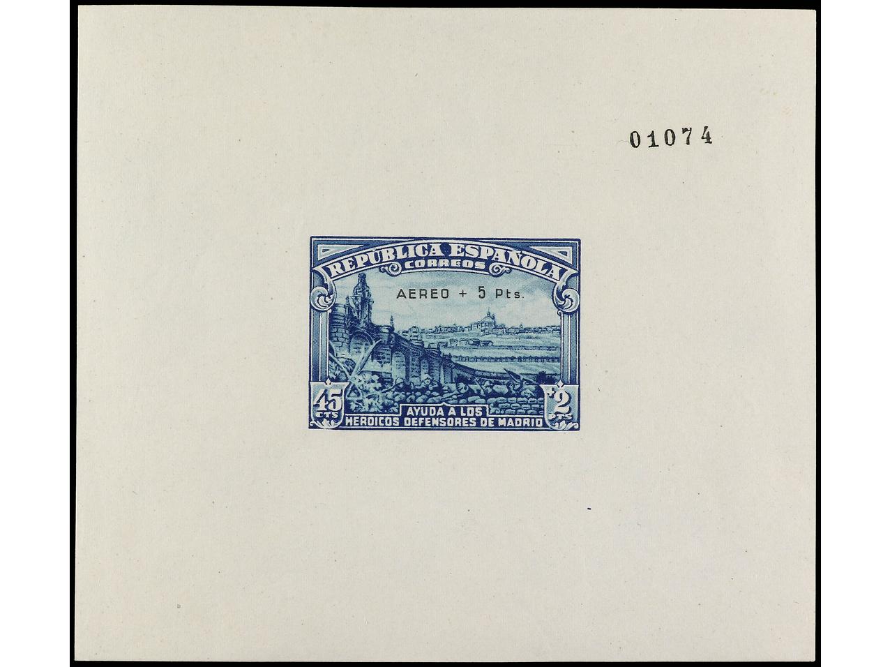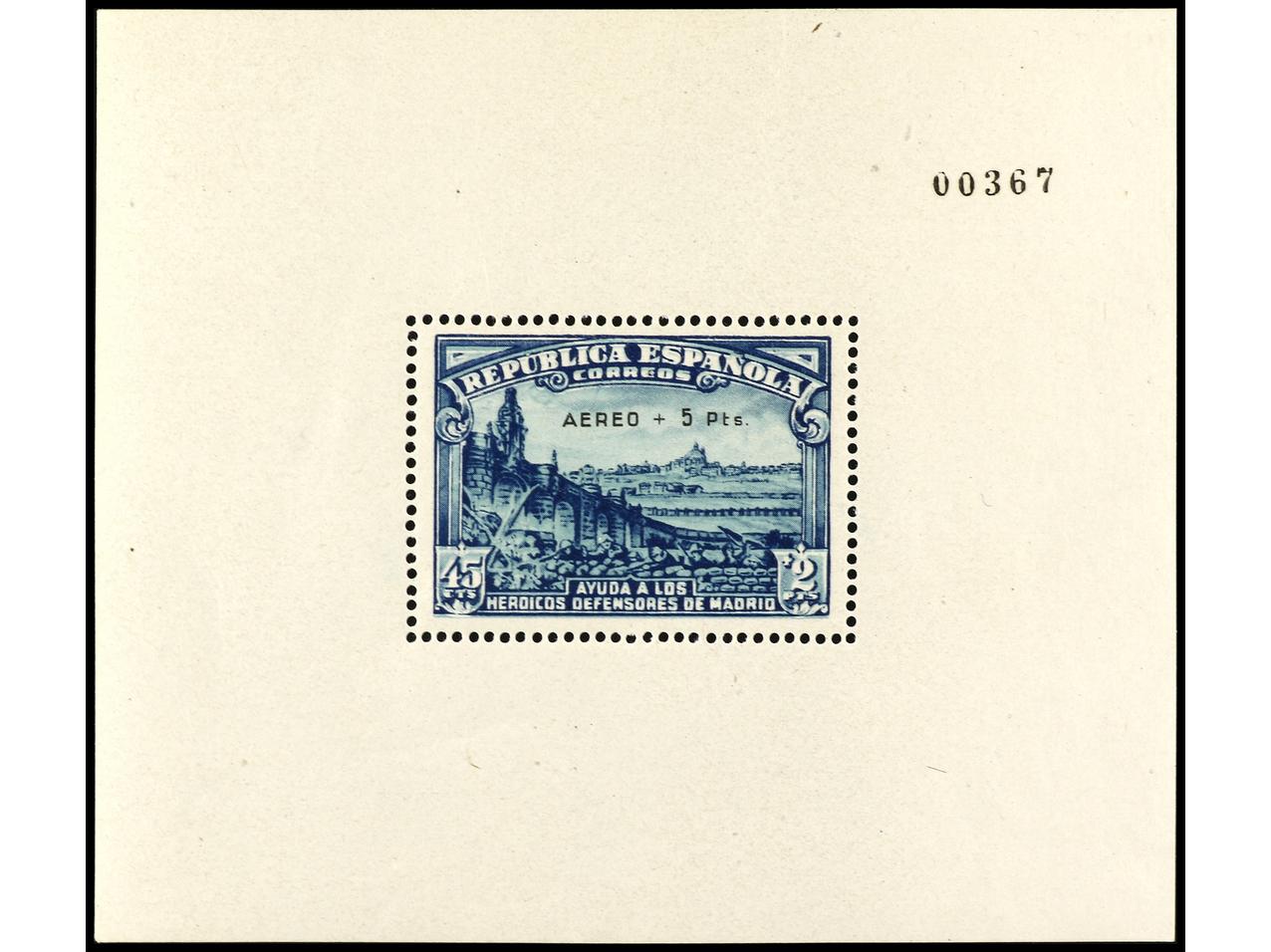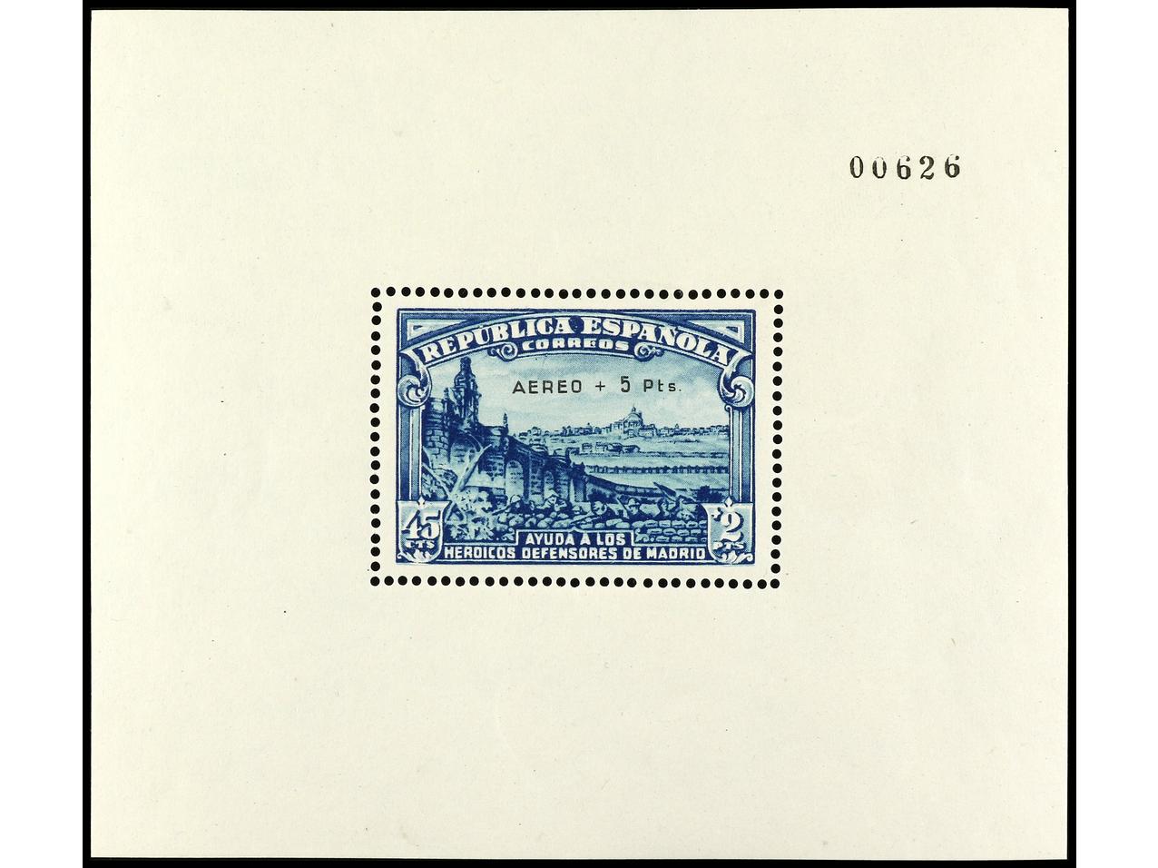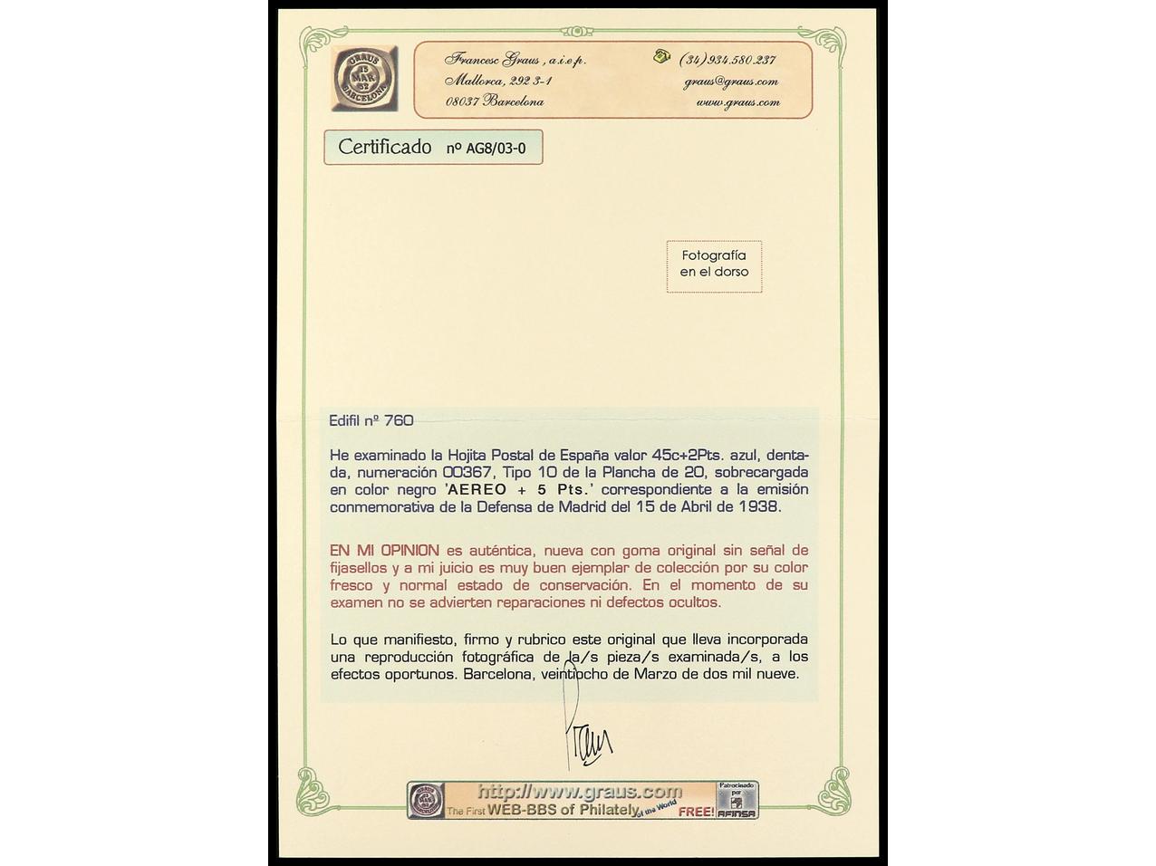 ESPAÑA. HB. Aéreo + 5 pts. Tipo 10. Muy bonita y rara sin fijasellos. Cert. GRAUS. Ed.760. Cat. 6.500€. (Image1) (Image2)