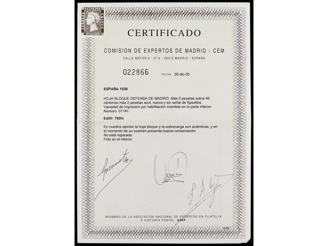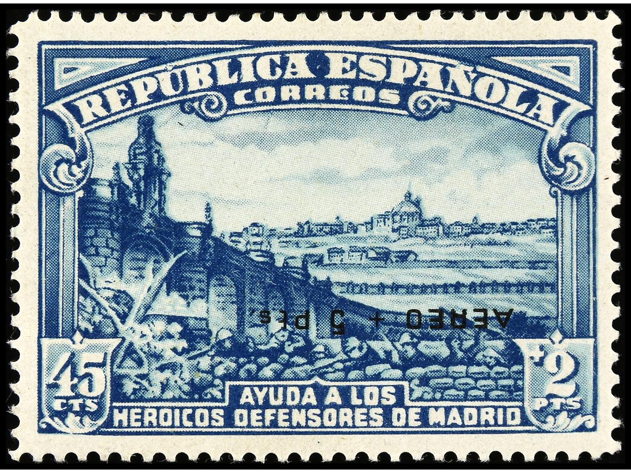ESPAÑA. HB. Aéreo + 5 pts. HABILITACIÓN INVERTIDA. MUY RARA y de LUJO. Cert. CEM. Ed.760hi. Cat. 9.100€. (Image1) (Image2)