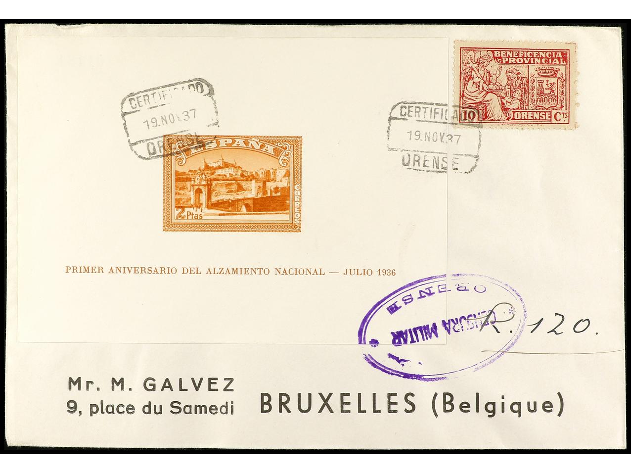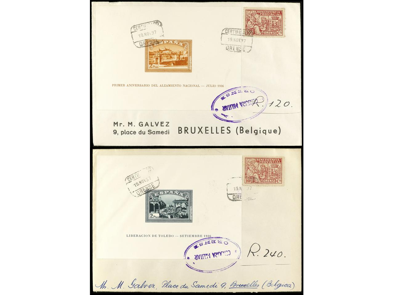 ESPAÑA. 1937. ORENSE a BÉLGICA. HB sin dentar en dos cartas circuladas, al dorso llegada. Ed.838/39. (Image1) (Image2)
