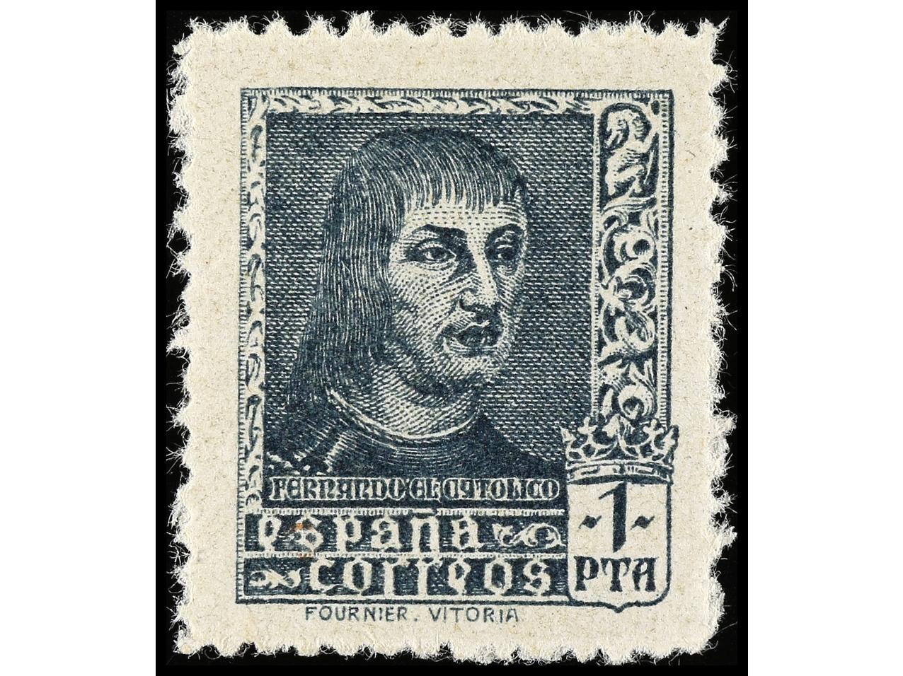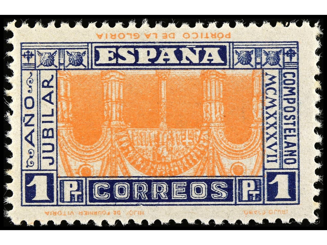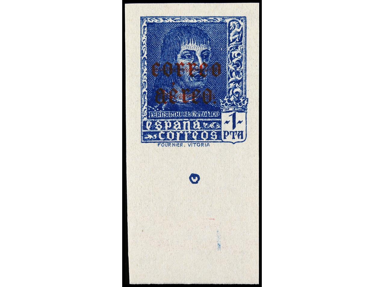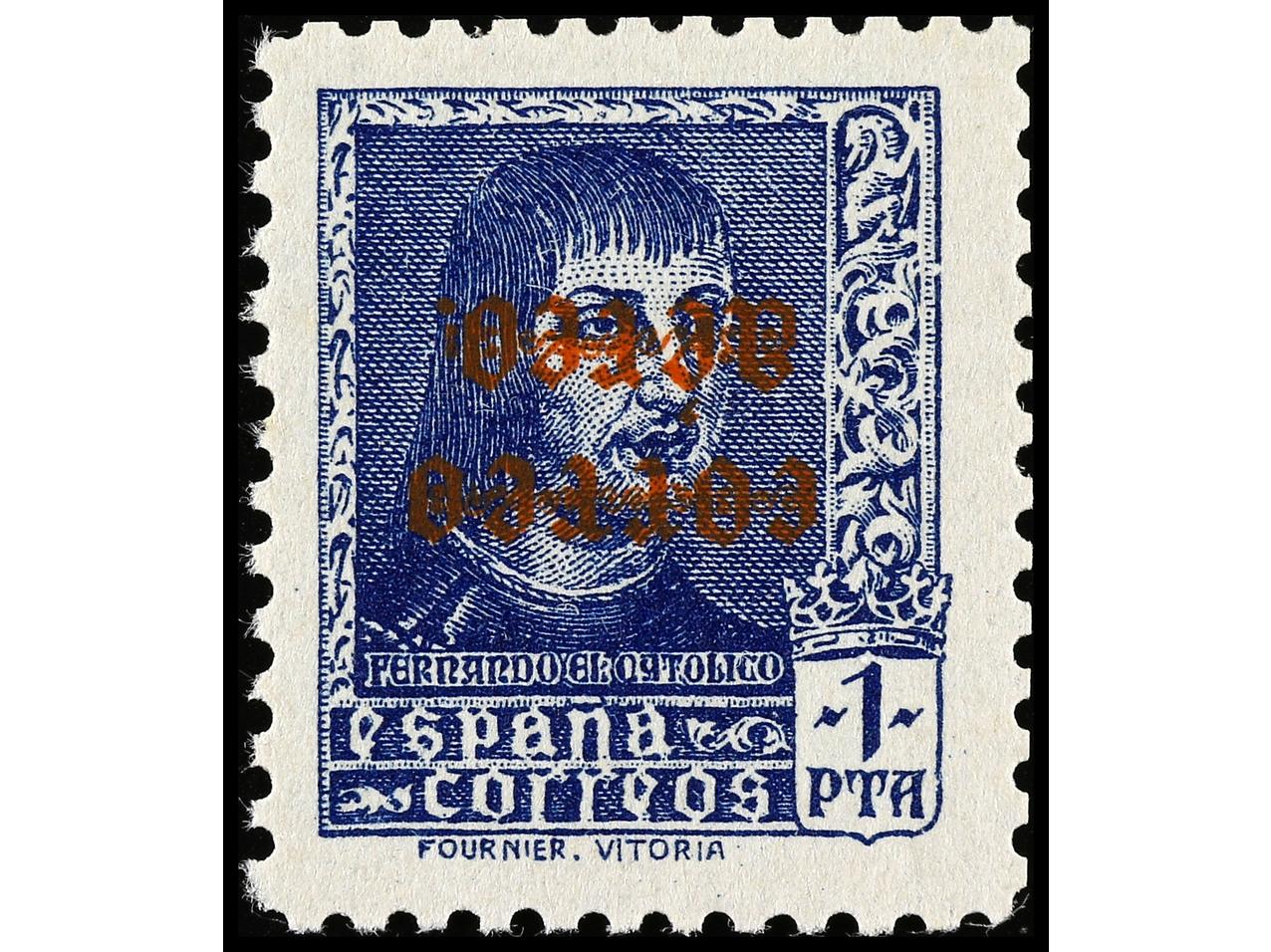 ESPAÑA. 1 pta. azul y naranja CENTRO INVERTIDO SIN DENTAR. RARO y de LUJO. Cert. COMEX. Ed.835eis. Cat. 1.300€. (Image1) (Image2)