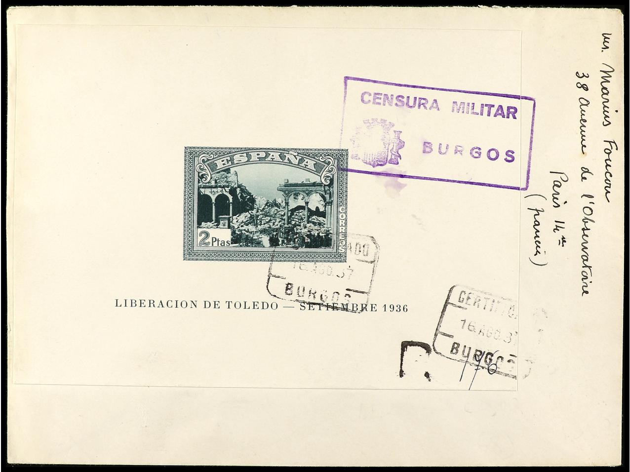 ESPAÑA. 1937. BURGOS a FRANCIA. HB. 2 pts. verde sin dentar en carta circulada. Al dorso llegada. Ed.839. (Image1) (Image2)