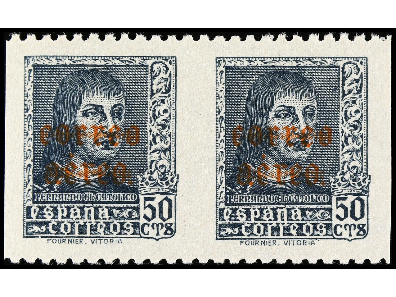 ESPAÑA. 50 cts. pizarra. Pareja horizontal SIN DENTADO VERTICAL. Ed.845sv (2). Cat. +210€. (Image1)