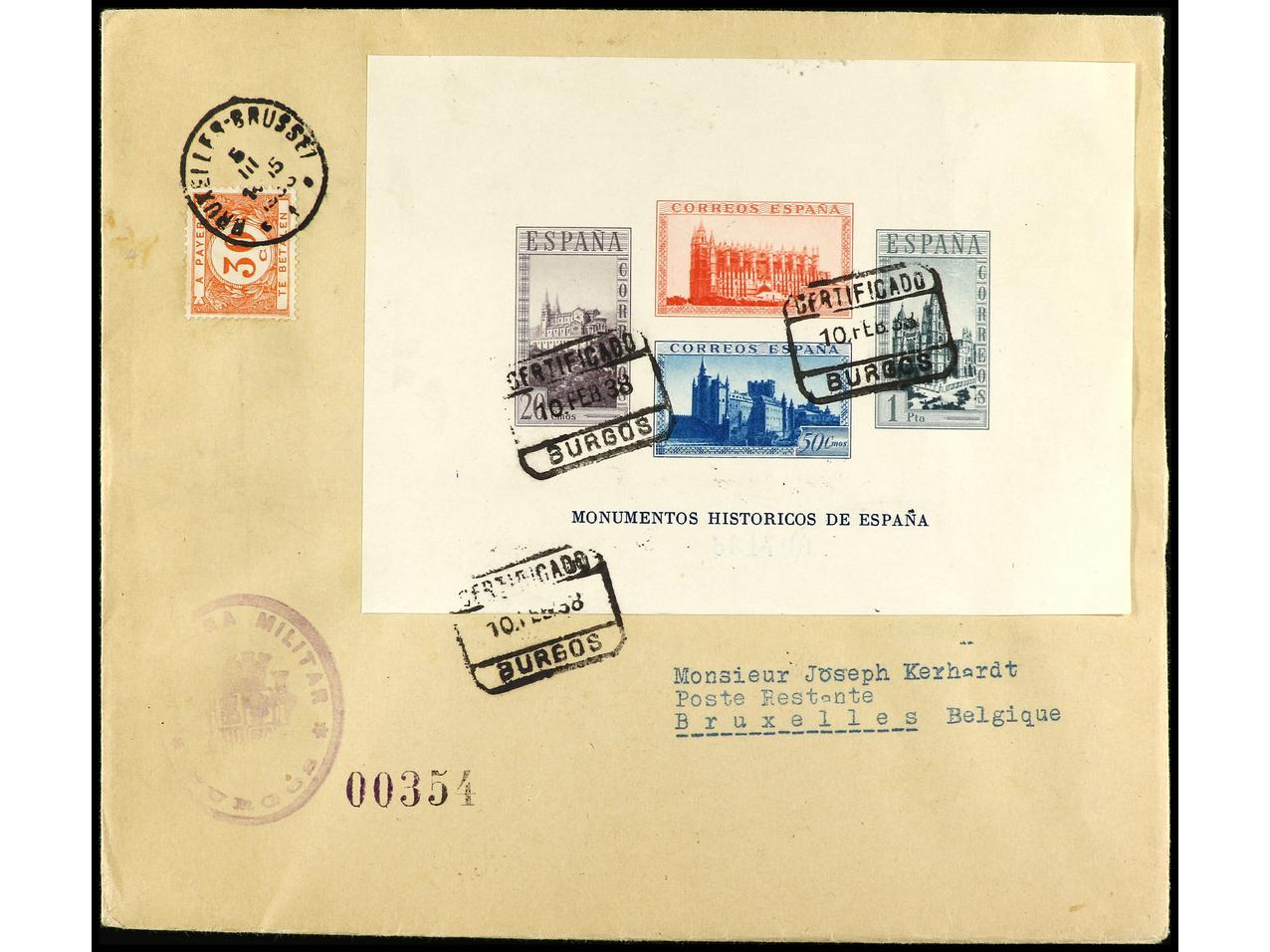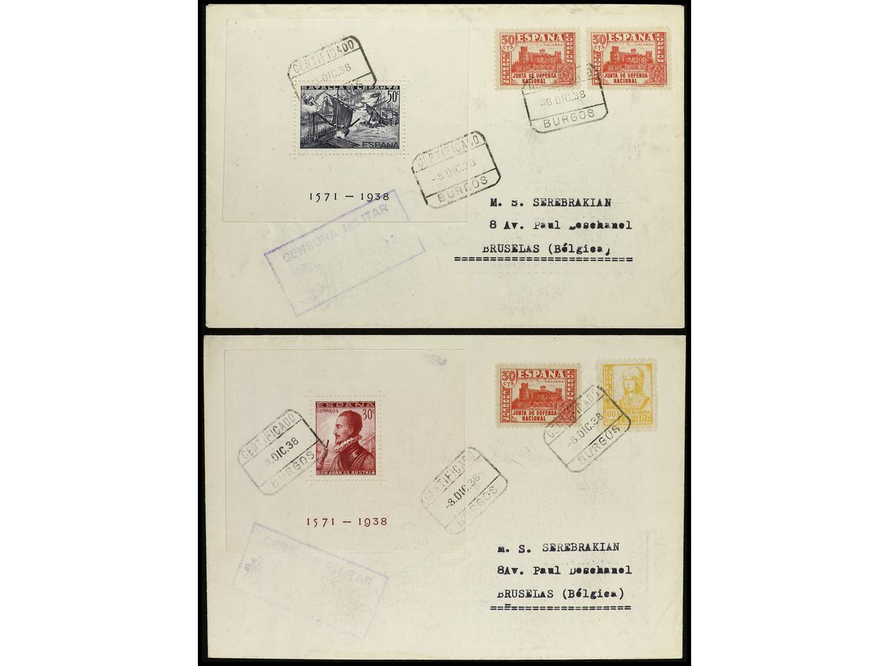 ESPAÑA. 1938. BURGOS a BRUSELAS. HB. dentadas en dos cartas circuladas, al dorso llegada. RARÍSIMA. Ed.862/63. (Image1) (Image2)