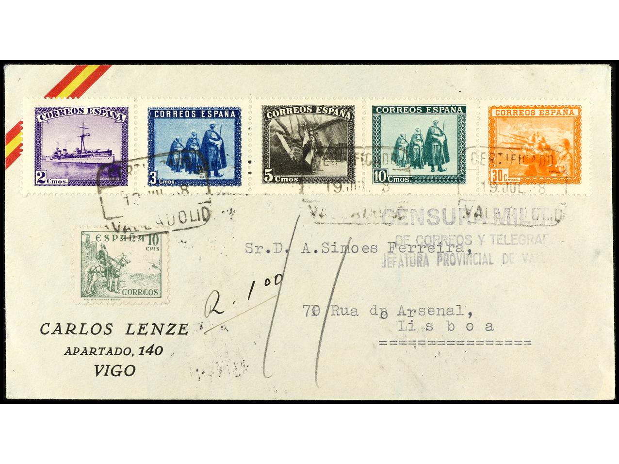 ESPAÑA. 1938. VALLADOLID a LISBOA. Serie completa (sellos procedentes de HB) en dos cartas circuladas, al dorso llegada. RARAS. Ed.SH 849. (Image1) (Image2)