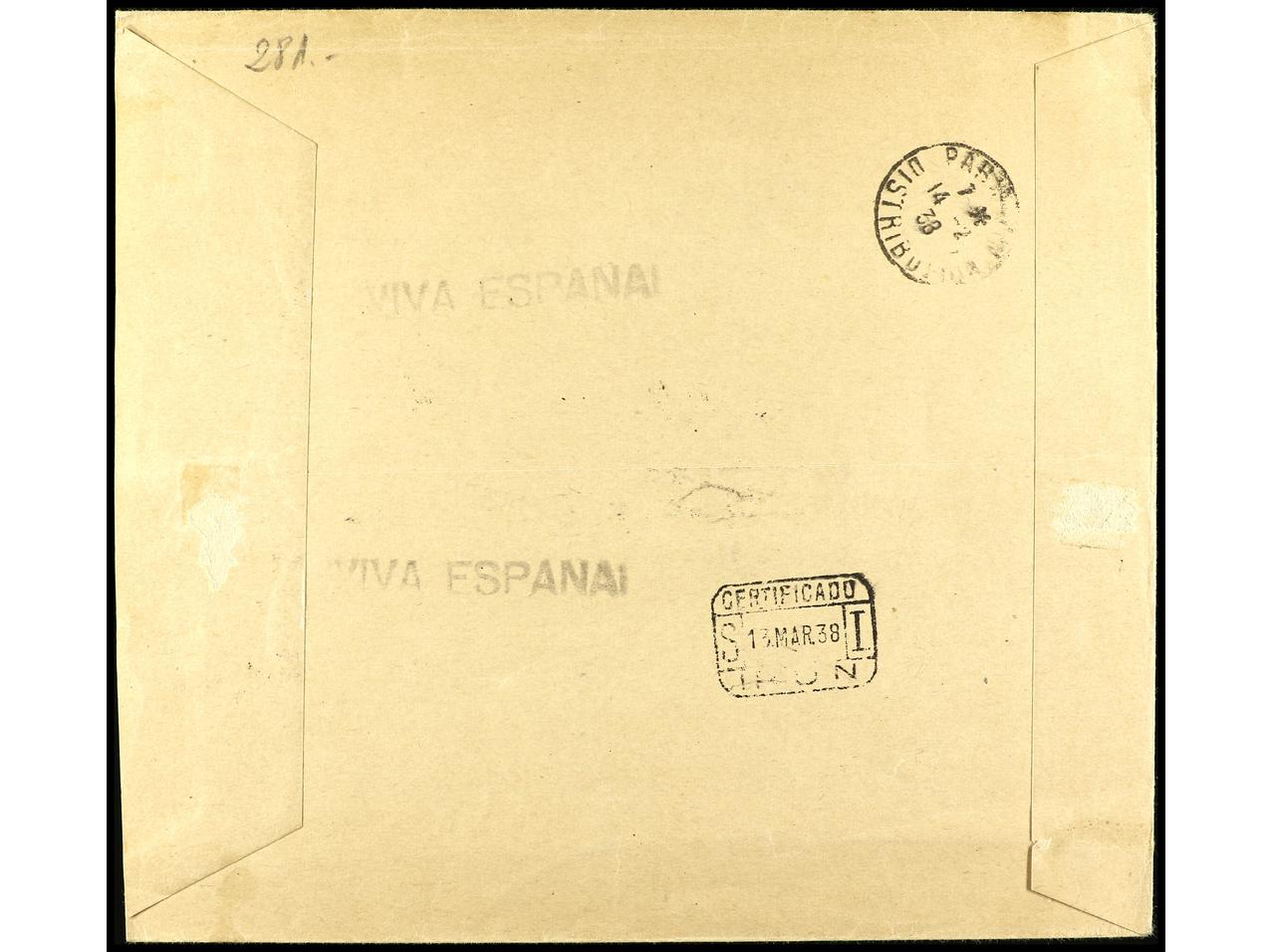 ESPAÑA. 1938. Dos cartas circuladas a París y Bruselas con las H.B. dentada y sin dentar, al dorso llegadas. Ed.847, 848. (Image1) (Image2)
