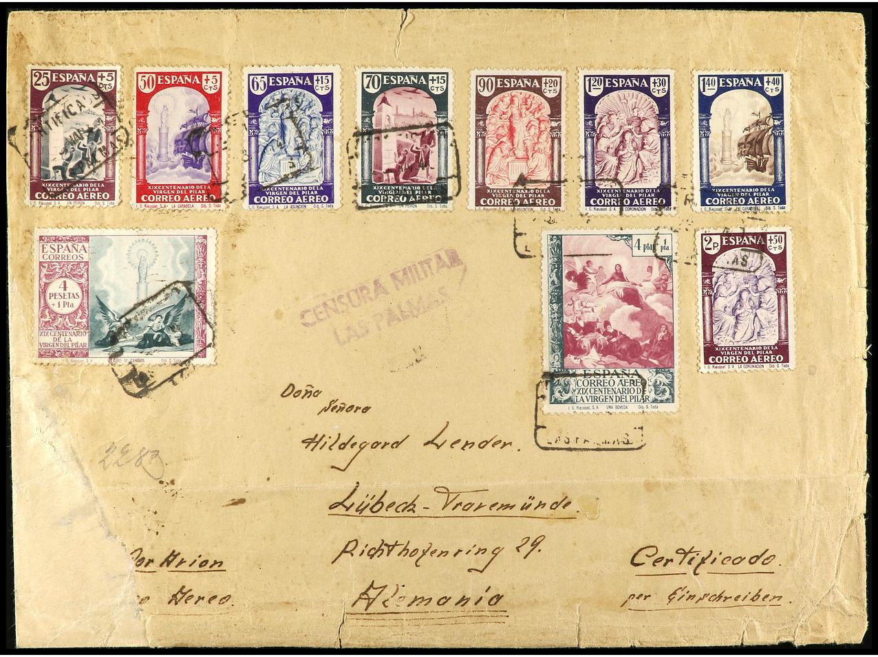 ESPAÑA. LAS PALMAS a ALEMANIA. Especacular franqueo, defectos en el sobre, al dorso llegada. Ed.901, 904/12. (Image1) (Image2)