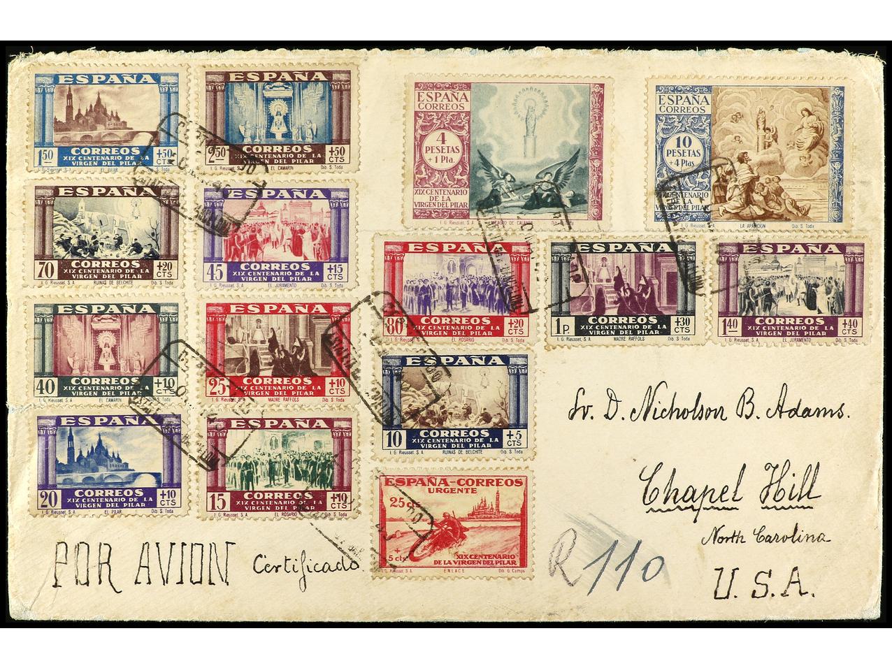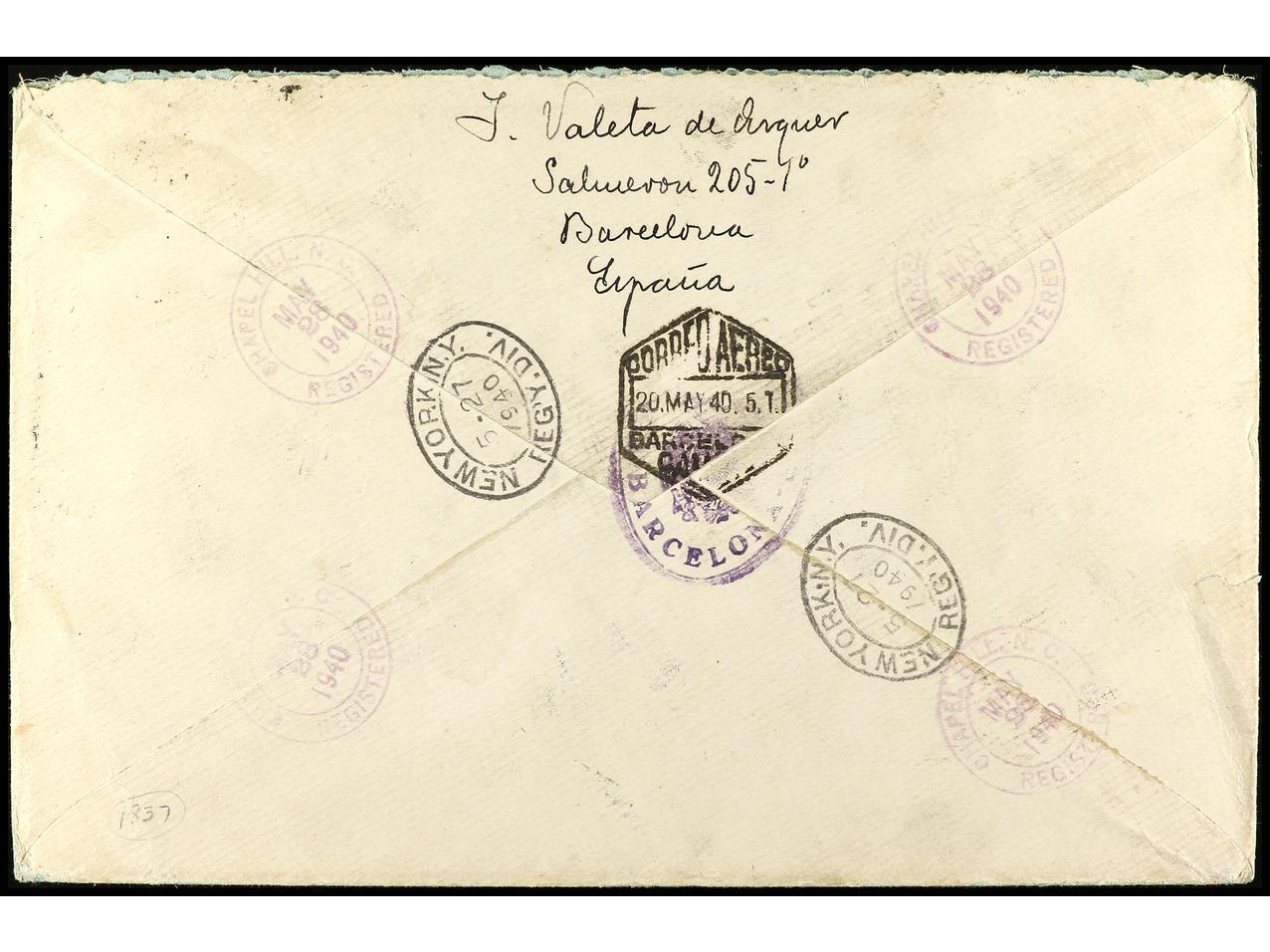 ESPAÑA. 1940. BARCELONA a U.S.A. Serie completa en carta circulada, al dorso llegada. Ed.889/903. (Image1) (Image2)