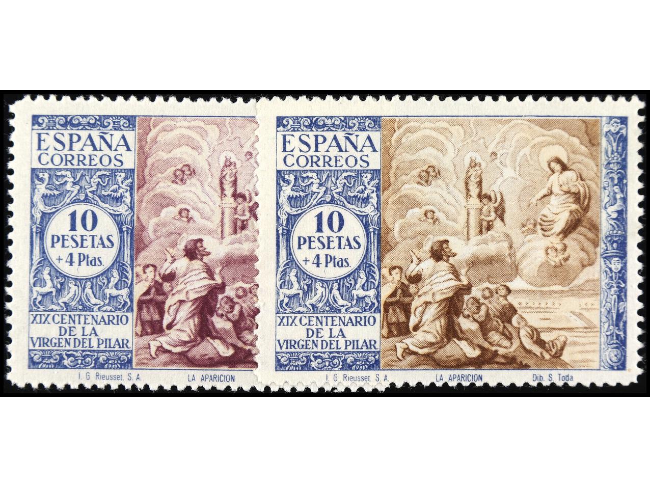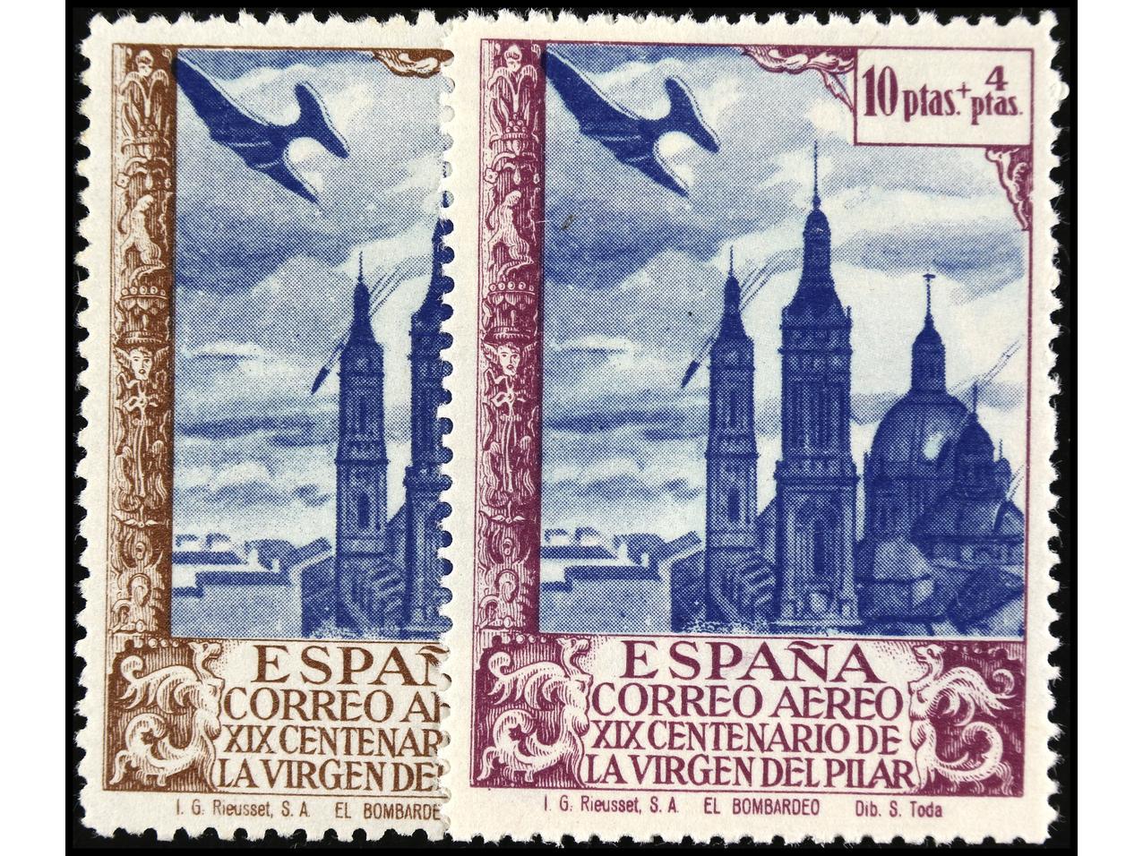 ESPAÑA. 50 cts. azul y 1 pta. castaño COLORES CAMBIADOS. Ed.883/4cc. Cat. +870€. (Image1) (Image2)
