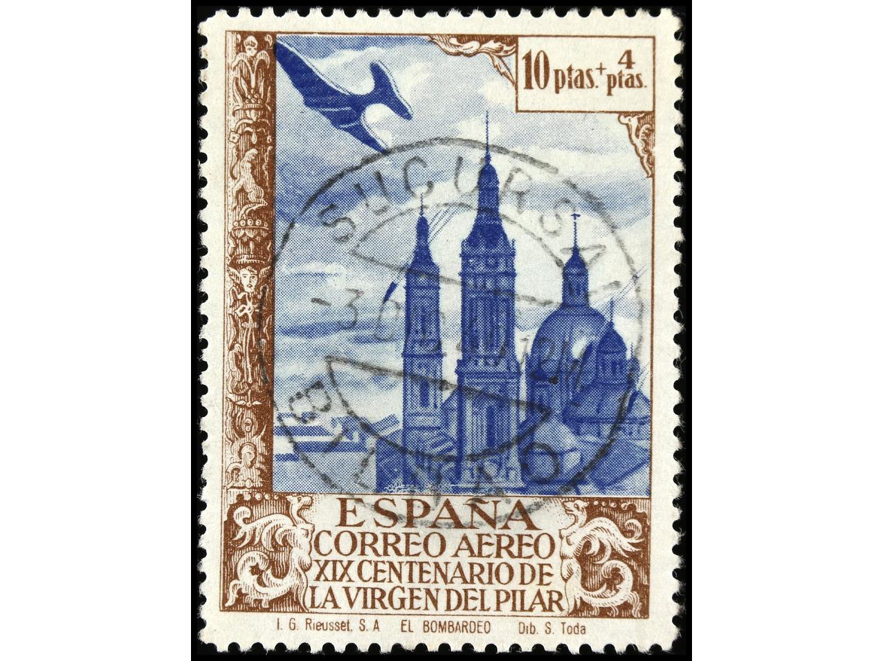 ESPAÑA. 1939. CORUÑA a BUENOS AIRES. 10 pts. castaño en pareja, mat. fechador AVIÓN-CORUÑA. Raro en carta y más como franqueo único. Al dorso llegada. Ed.878 (2). (Image1)