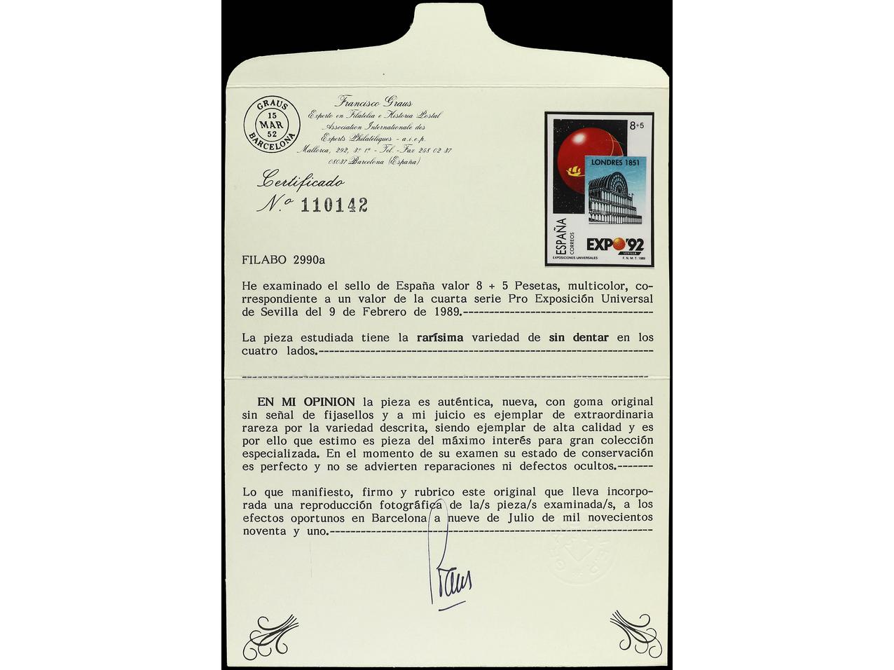 ESPAÑA. EXPO´92. 8+5 pts. multicolor SIN DENTAR. LUJO. Cert. GRAUS. Ed.2990s. (Image1) (Image2)