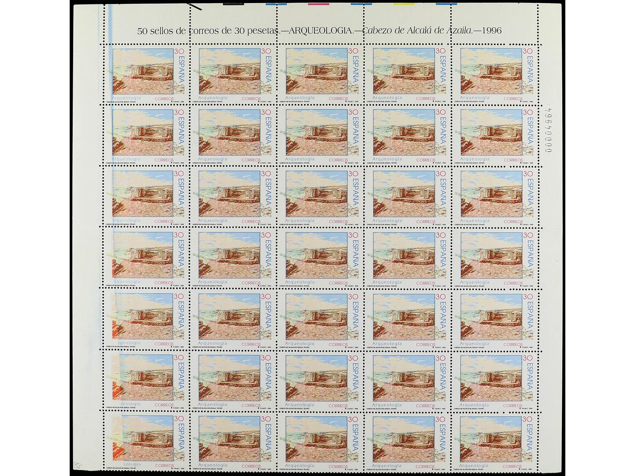 ESPAÑA. ARQUEOLOGIA. 30 pts. multicolor. Bloque de 35 sellos. Franja sin el color azul a la izquierda. RARO. Ed.3449. (Image1)