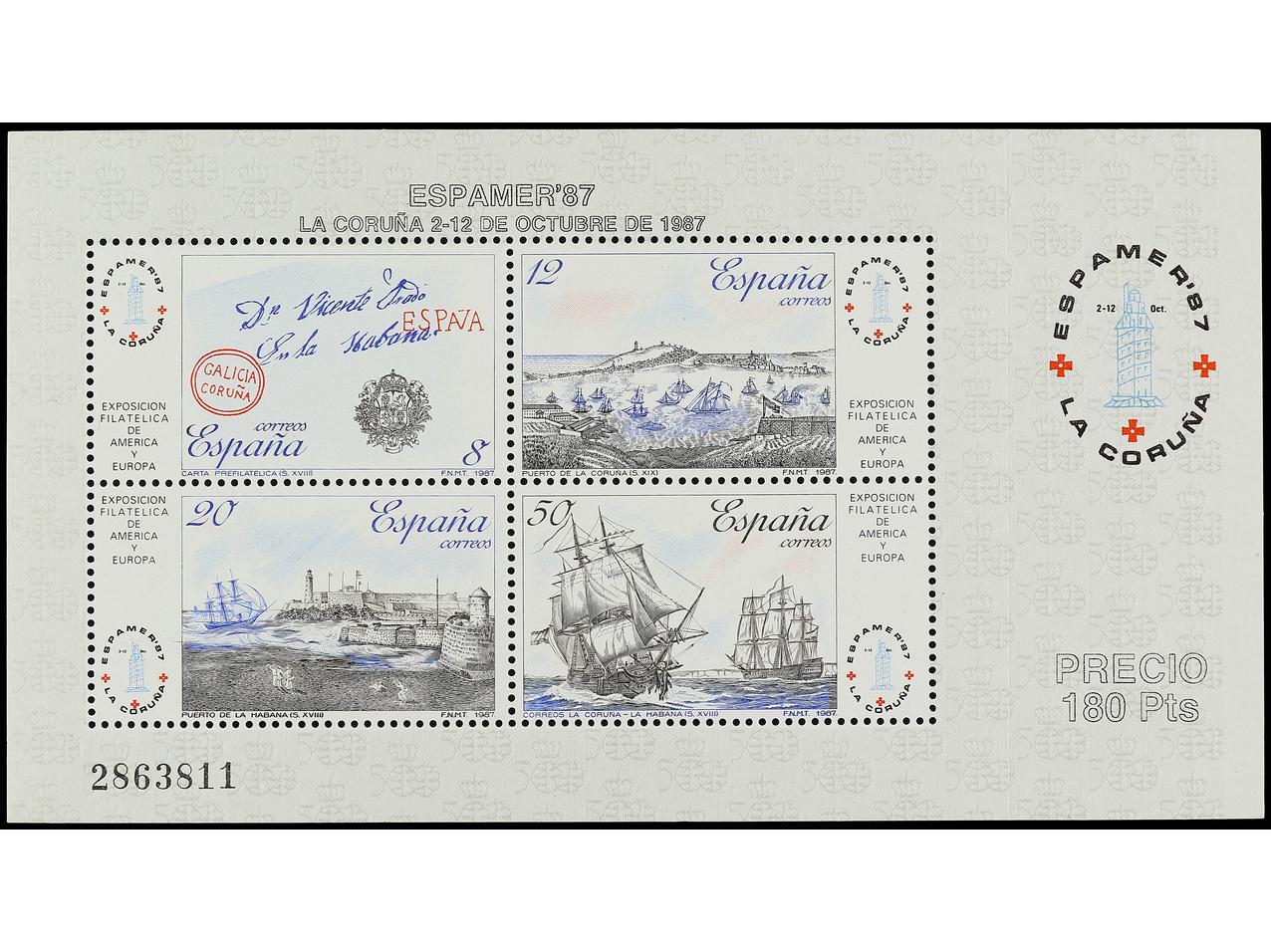 ESPAÑA. ESPAMER´87. HB multicolor PERFORACIÓN DESPLAZADA y NUMERACIÓN INVERTIDA. RARA. Ed.2916. (Image1) (Image2)