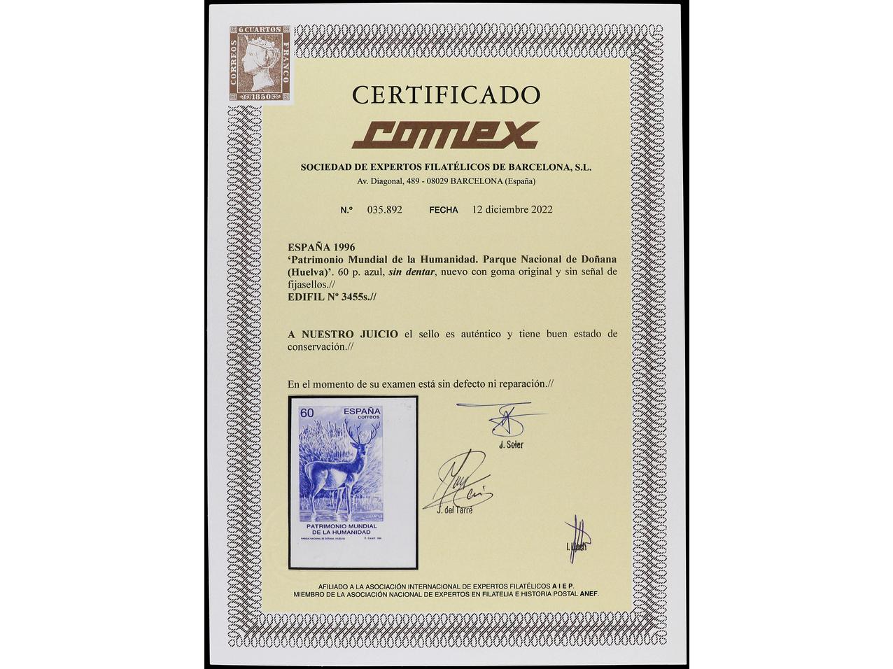 ESPAÑA. PATRIMONIO MUNDIAL DE LA HUMANIDAD. 60 pts. azul SIN DENTAR. RARÍSIMO. Cert. COMEX. Ed.3455s. (Image1) (Image2)