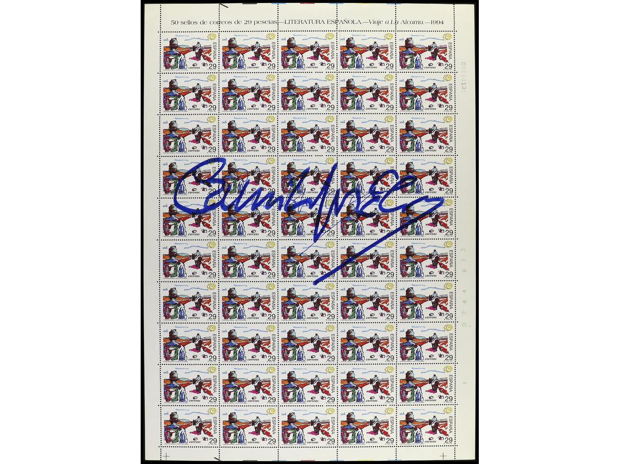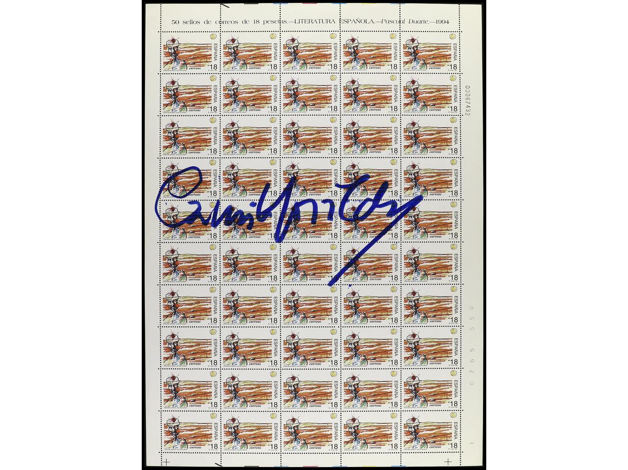 ESPAÑA. LITERATURA ESPAÑOLA. 2 hojas de 50 sellos con la firma autógrafa de CAMILO JOSE CELA. Ed.3303/04. (Image1) (Image2)