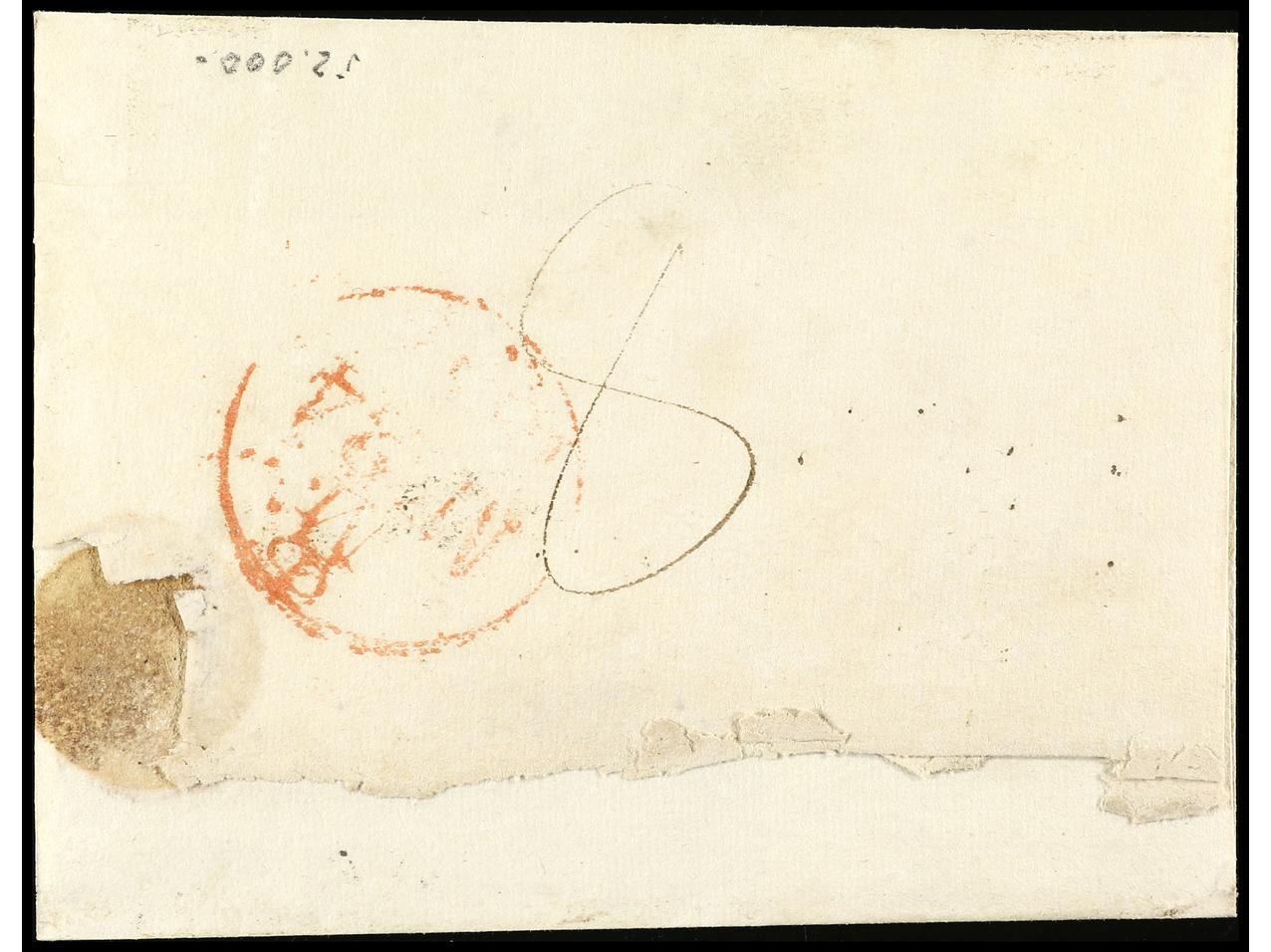 ESPAÑA: PREFILATELIA. 1786. LOJA. Sobrescrito de LOJA a GRANADA. Marca en rojo ANDALVCIA/BAXA (P.E. 2). PRECIOSA y RARA. (Image1) (Image2)