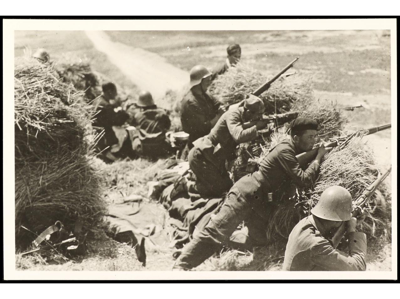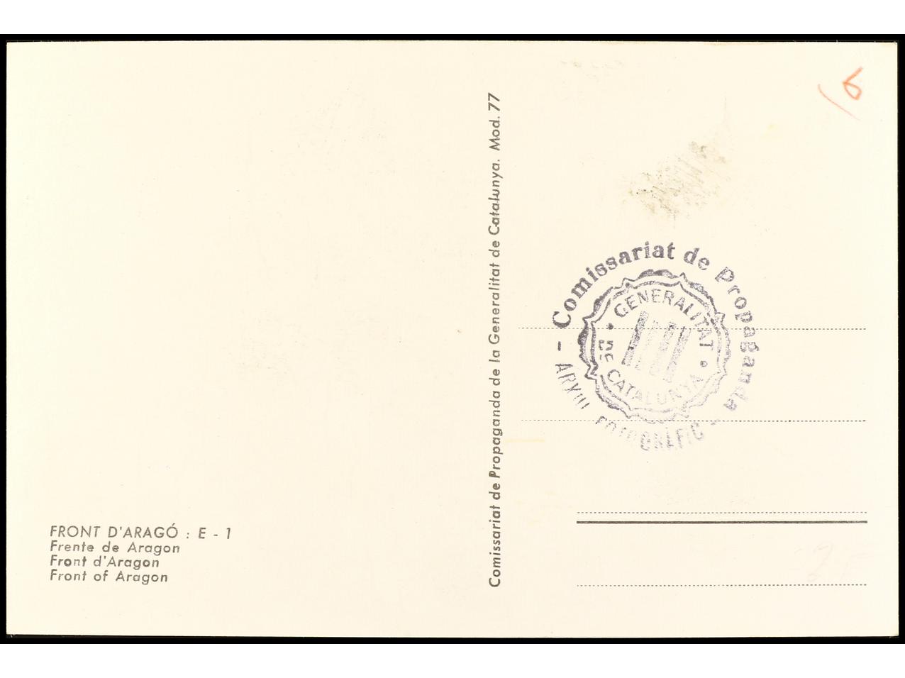 ESPAÑA GUERRA CIVIL. ZONA REPUBLICANA. Tarjeta postal ilustrada ´FRONT D´ARAGÓ: E-1´ Editada por ´COMISSARIAT DE PROPAGANDA/ GENERALITAT DE CATALUNYA´ RARA.