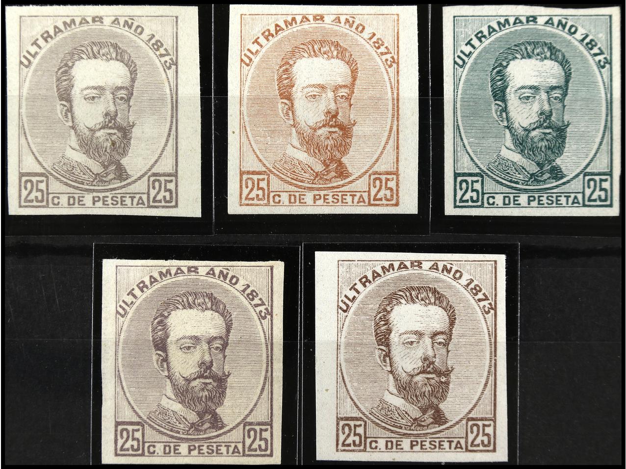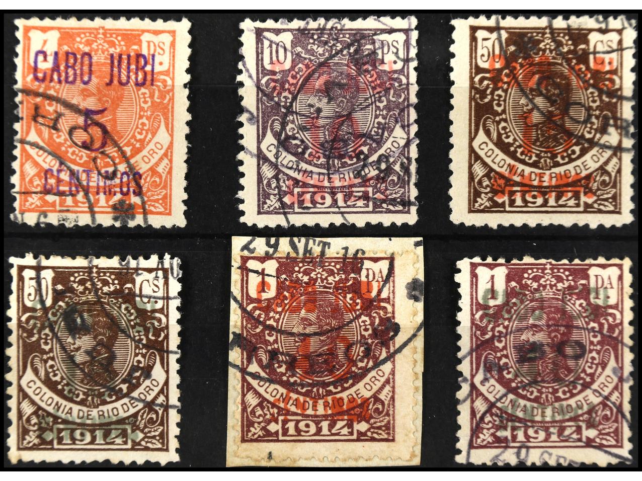 COLONIAS ESPAÑOLAS: CABO JUBY. SERIE COMPLETA a falta del 40 cts. (habilitación en carmín). Ed. 3 y 4A sobre fragmento. Ed.1/4A sin 4. Cat. 250€.