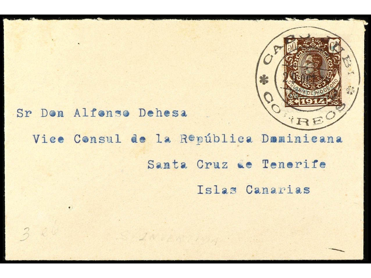 COLONIAS ESPAÑOLAS: CABO JUBY. 1916. CABO JUBY a SANTA CRUZ DE TENERIFE. 15 cts. s. 50 cts. Ed.3A. (Image1) (Image2)