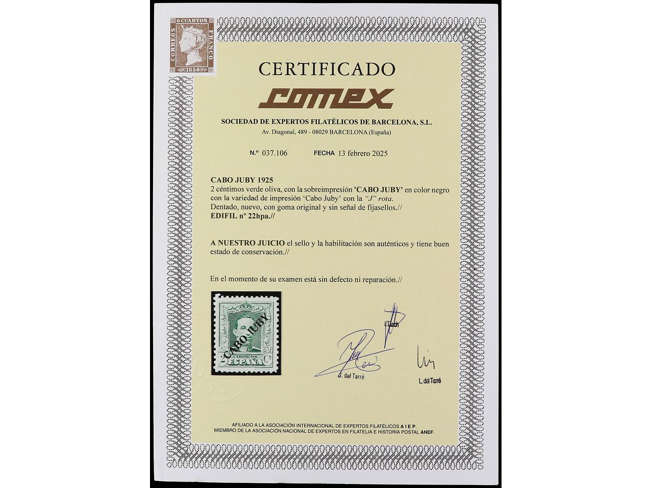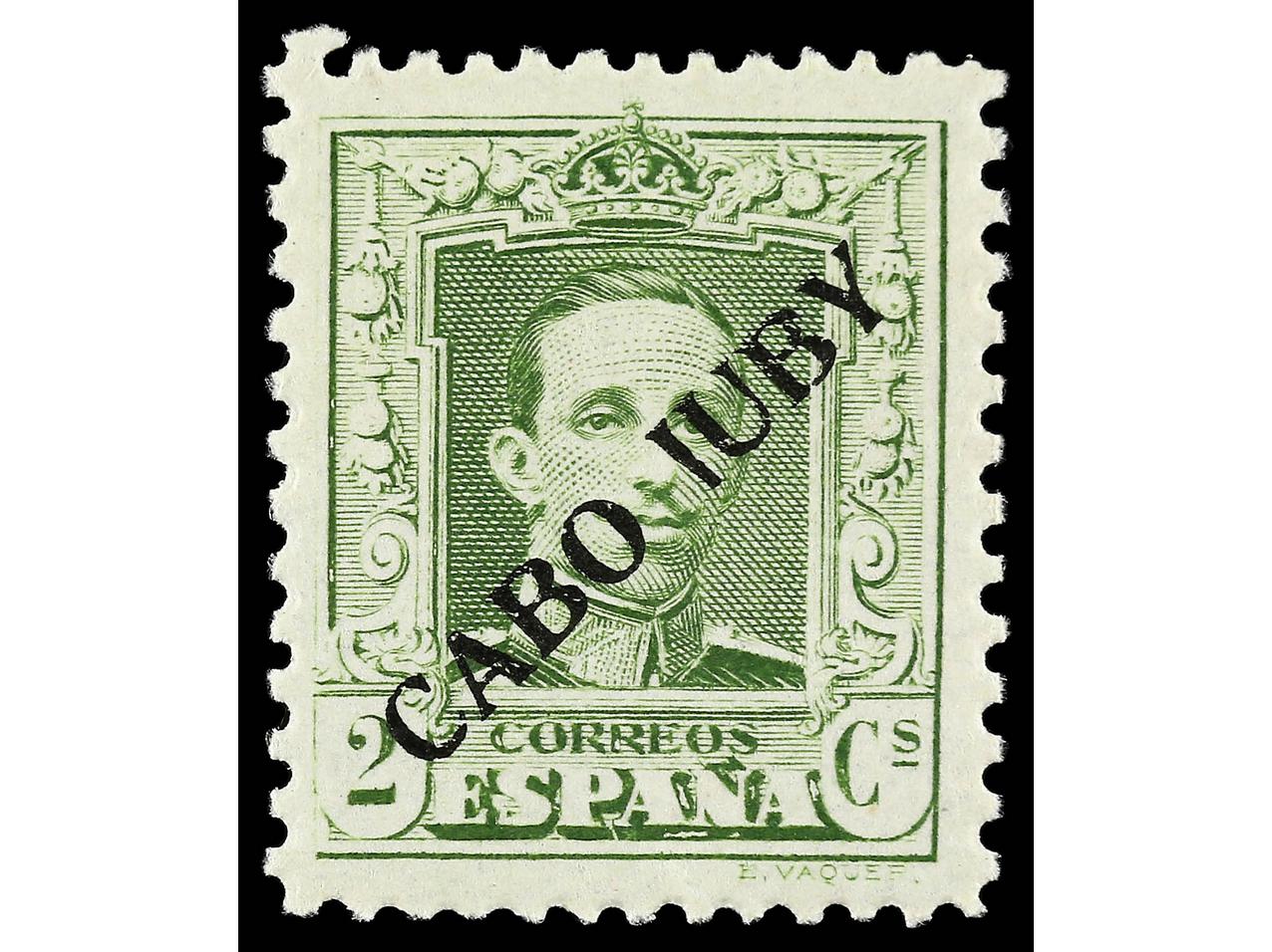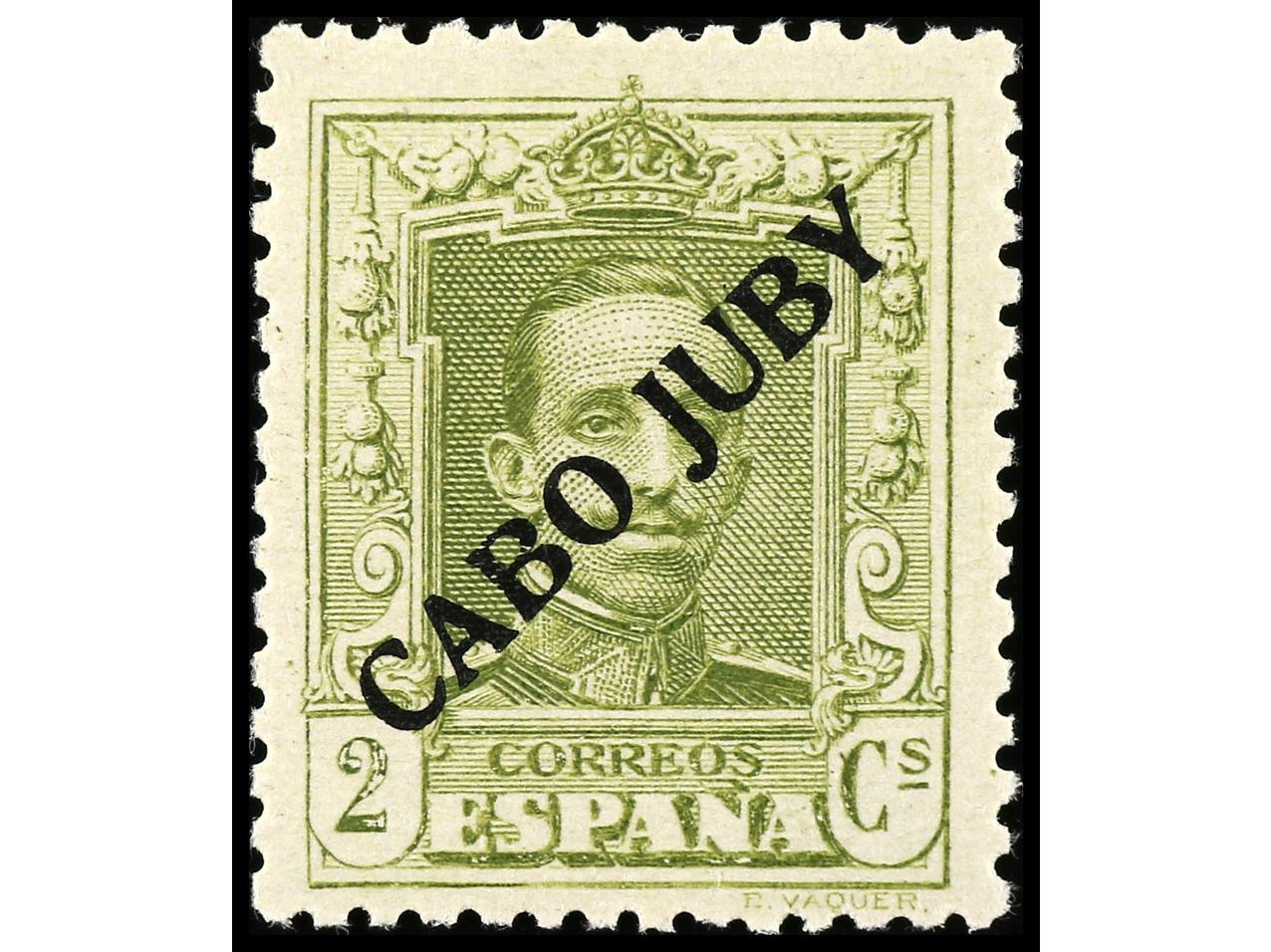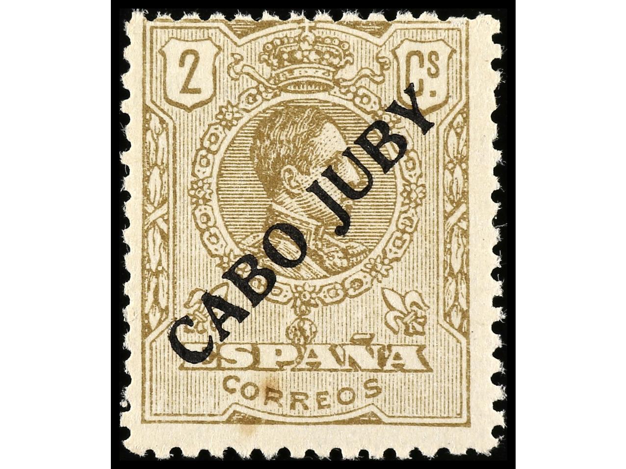 COLONIAS ESPAÑOLAS: CABO JUBY. 2 cts. verde oliva. MUY RARO y de LUJO. Cert. COMEX. Ed.22. Cat. +720€. (Image1)