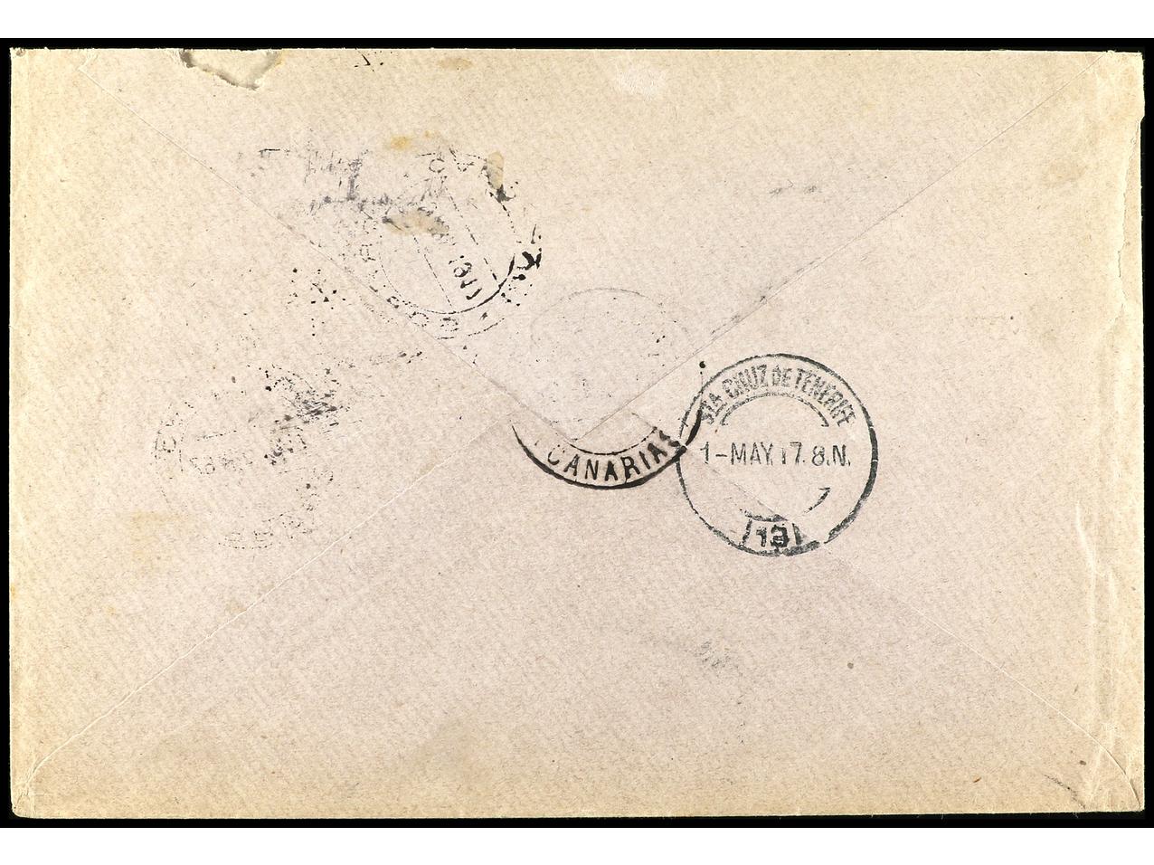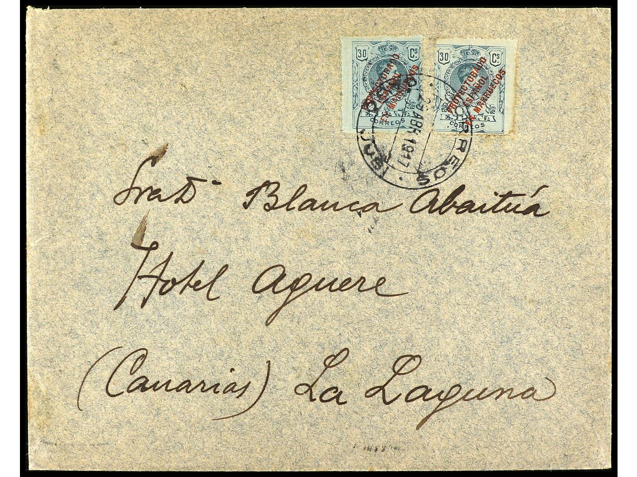 COLONIAS ESPAÑOLAS: CABO JUBY. 1919. CABO JUBY a CANARIAS. Sellos de Marruecos usados en Cabo Juby en carta no criculada. ESPECTACULAR (valor catálogo sellos usados 1959€). Ed.4B/4N. (Image1) (Image2)