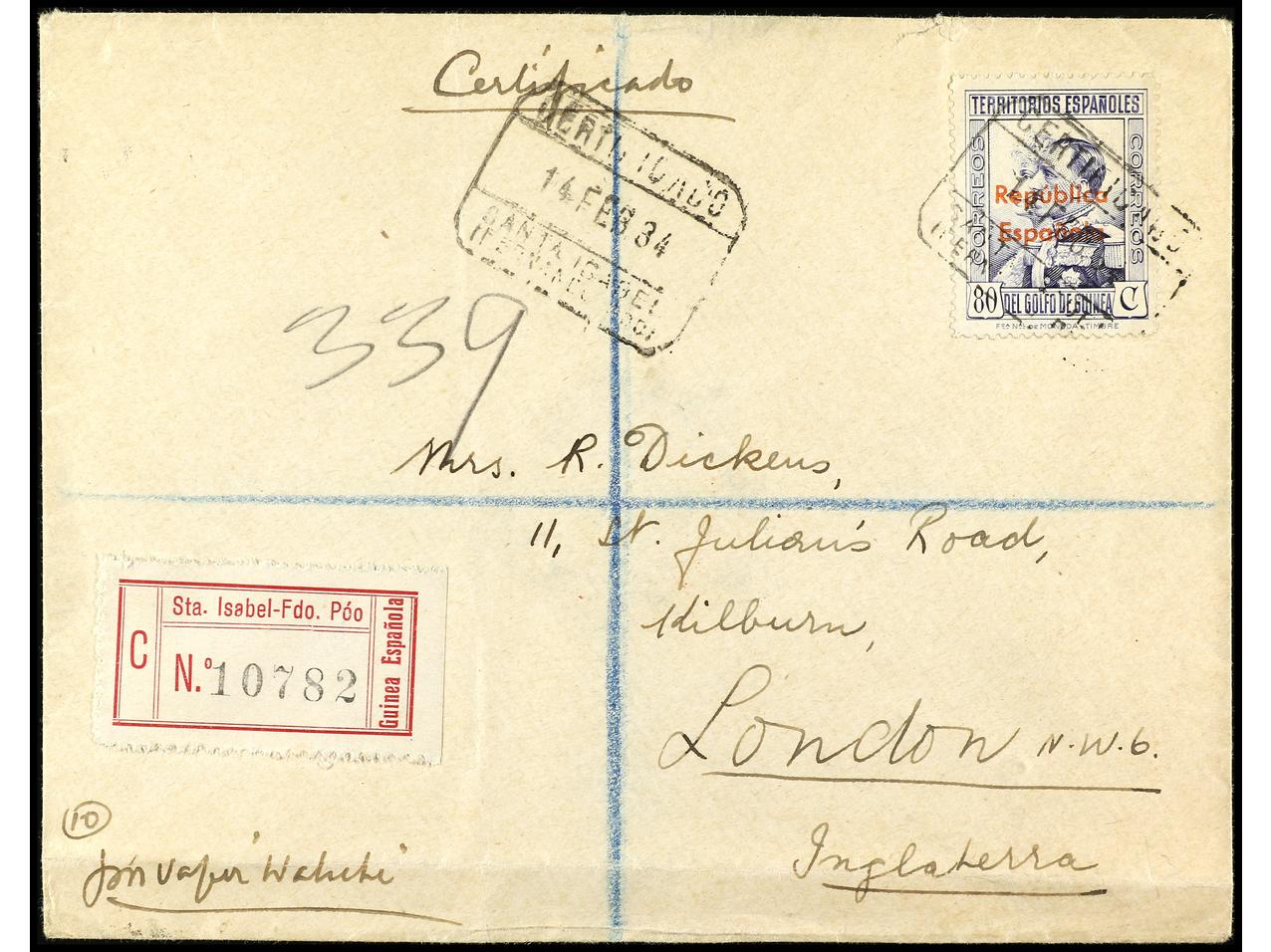 COLONIAS ESPAÑOLAS: GUINEA. 1934. Certificado de SANTA ISABEL a LONDRES. AL dorso llegada. MUY BONITA. (Image1) (Image2)