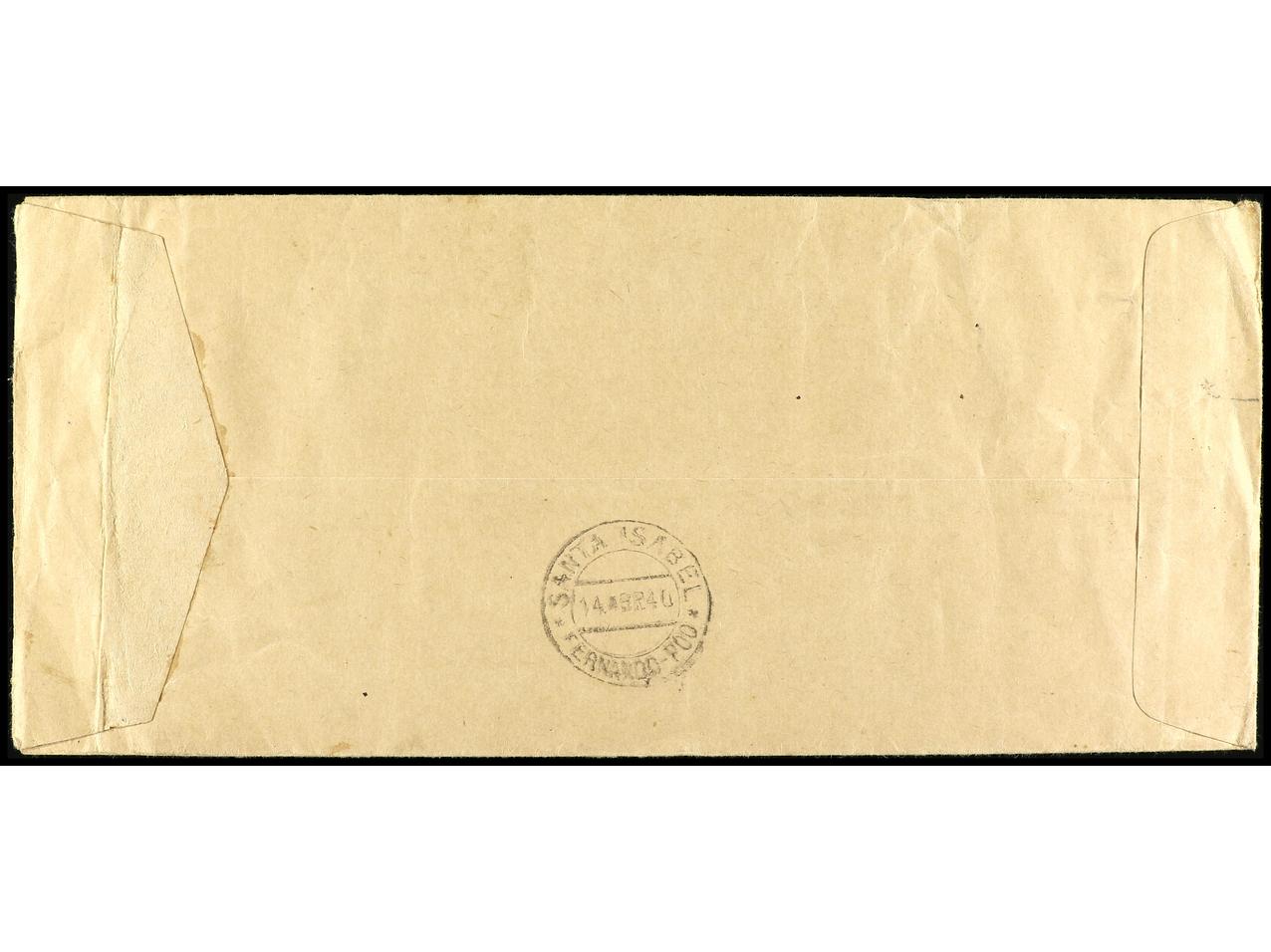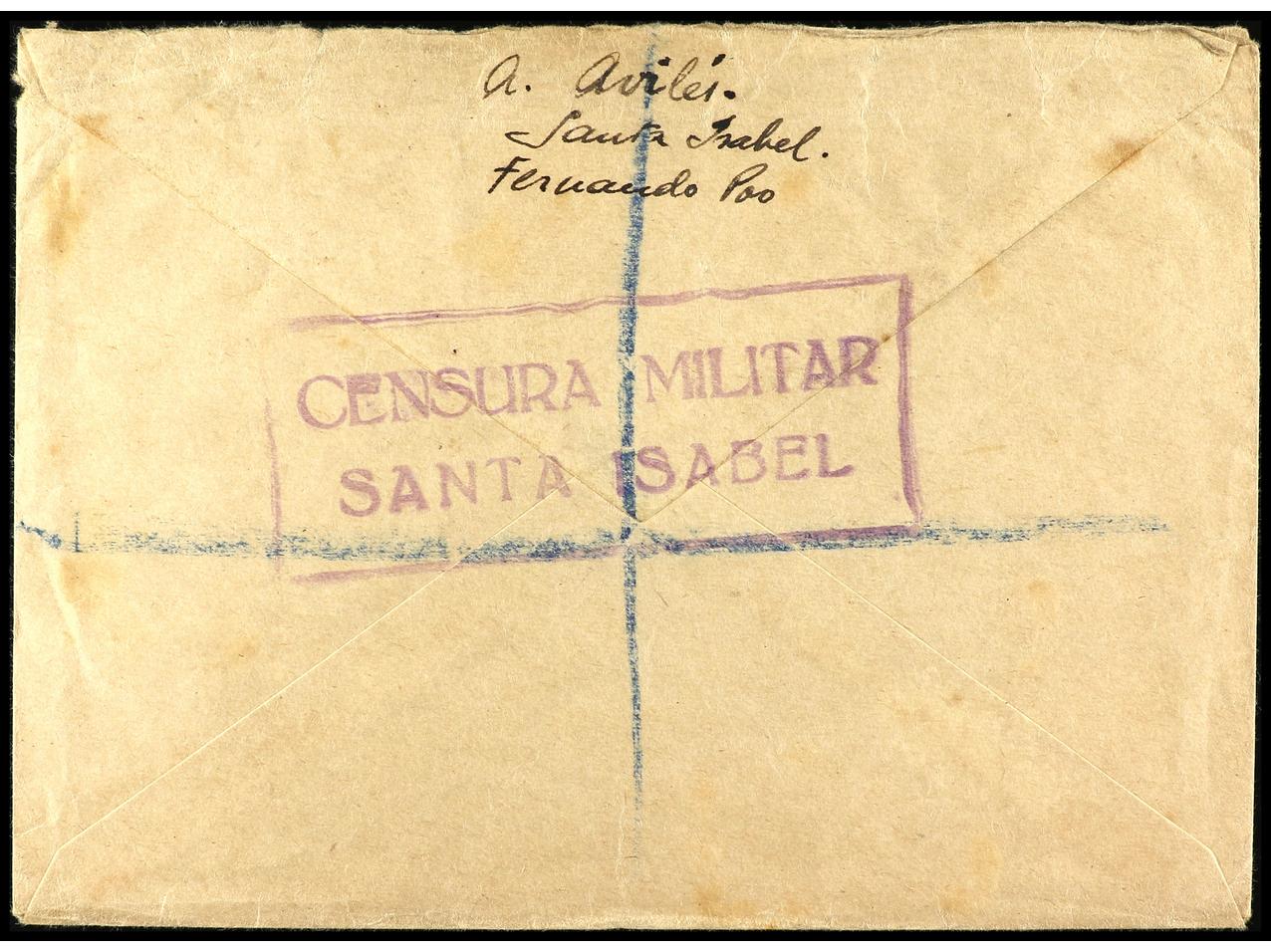COLONIAS ESPAÑOLAS: GUINEA. 1936. STA. ISABEL a NIGERIA. 10 cts. verde, 40 cts. azul carta devuelta al remitente por no encontrar al destinatario, marca de Censura Militar de Santa Isabel. Ed.238, 247. (Image1) (Image2)