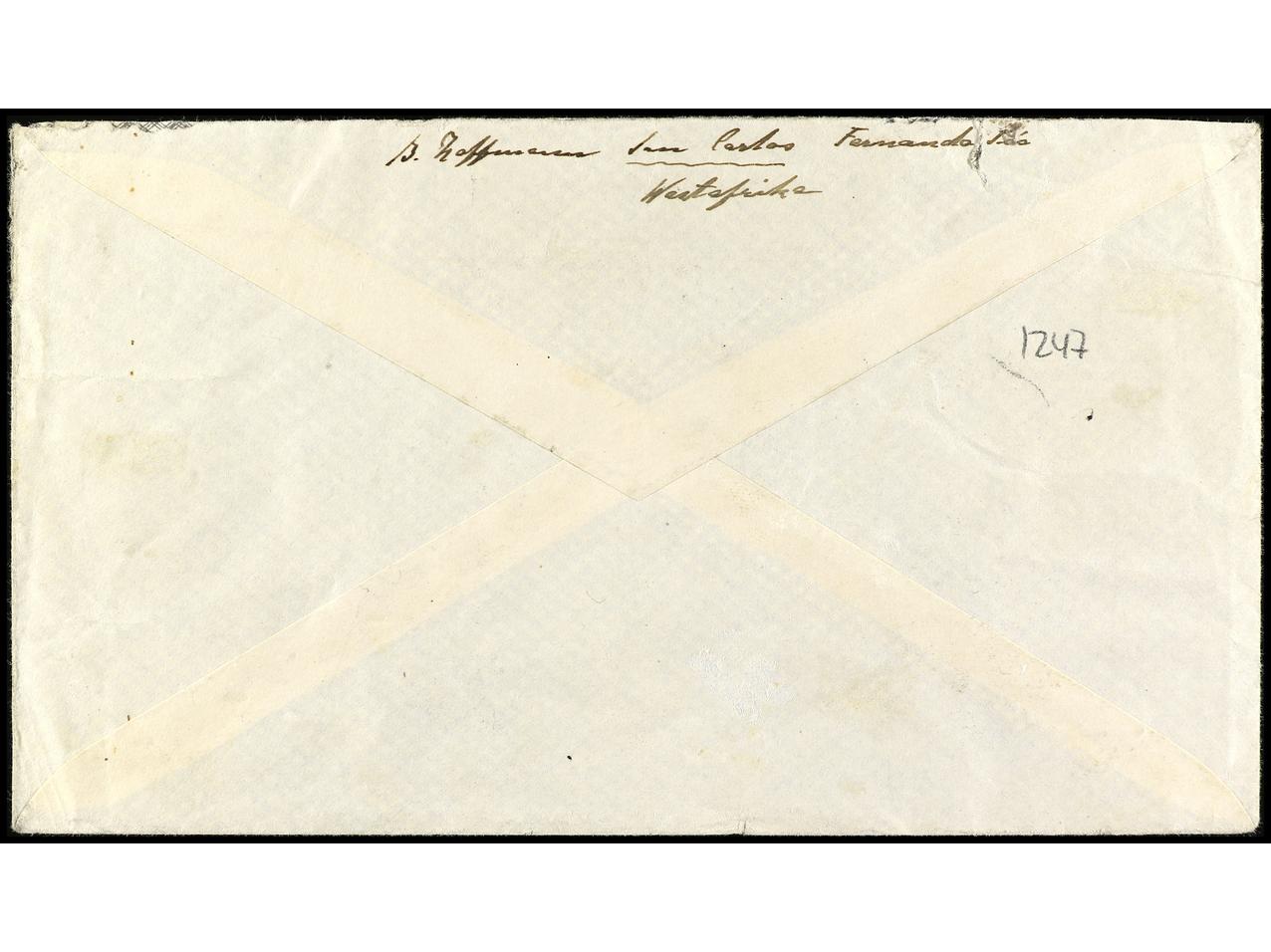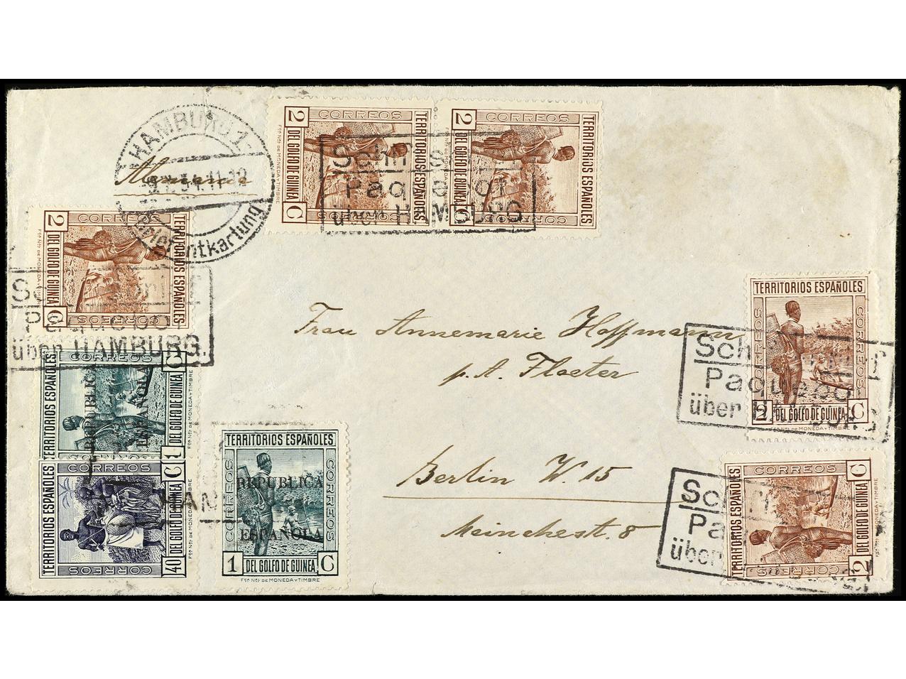 COLONIAS ESPAÑOLAS: GUINEA. 1931. S. CARLOS a ALEMANIA. 1 cto. (2), 2 cts. (5) y 40 cts. mat. marítimo alemán SCHIFBRIEF/ PAQUEBOT/ UBER HAMBURG y llegada al frente. RARA. (Image1) (Image2)