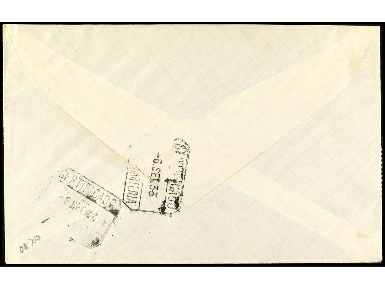 COLONIAS ESPAÑOLAS: GUINEA. 1933. STA. ISABEL a MADRID, 50 cts. naranja, HABILITACIÓN DOBLE y 10 cts. RARA en carta circulada, al dorso llegada. Ed.239hh, 233.