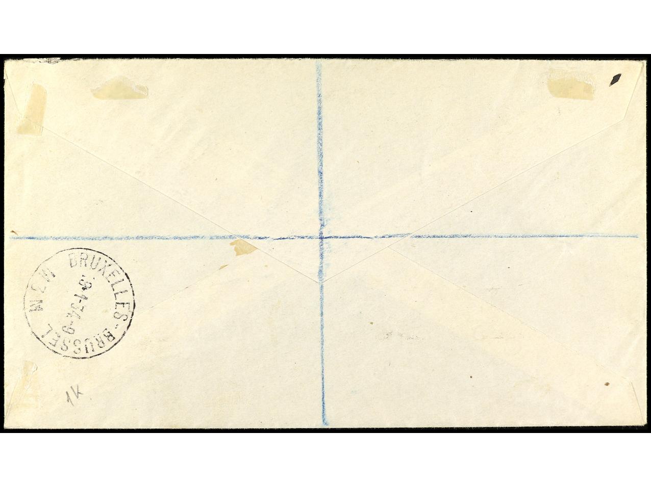 COLONIAS ESPAÑOLAS: GUINEA. 1934. STA. ISABEL a BÉLGICA. 10 cts. verde, HABILITACIÓN INVERTIDA, 20 cts. y 40 cts. RARO en carta circulada, al dorso llegada. Ed.233hi, 207, 224. (Image1) (Image2)