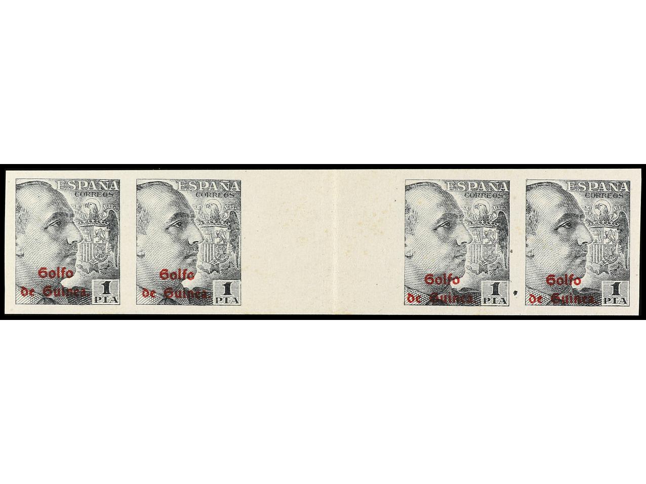COLONIAS ESPAÑOLAS: GUINEA. 1 pta. gris. Tira de cuatro con interpanel central SIN DENTAR. No reseñado. Ed.273s. (Image1)
