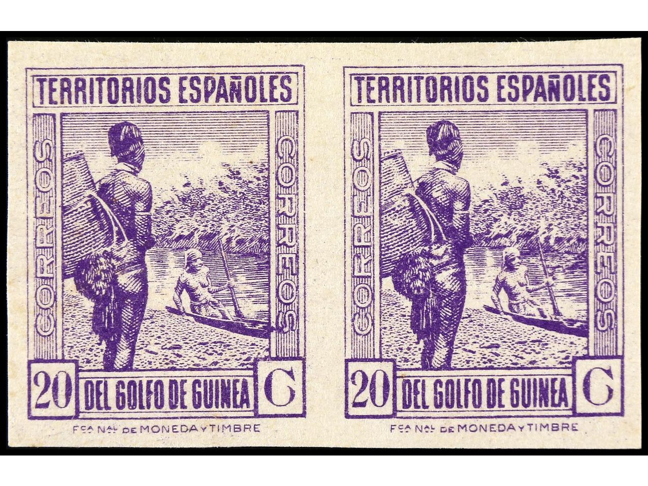 COLONIAS ESPAÑOLAS: GUINEA. 20 cts. lila. Pareja SIN DENTAR. RARA y no reseñada. Ed.265s. (Image1)