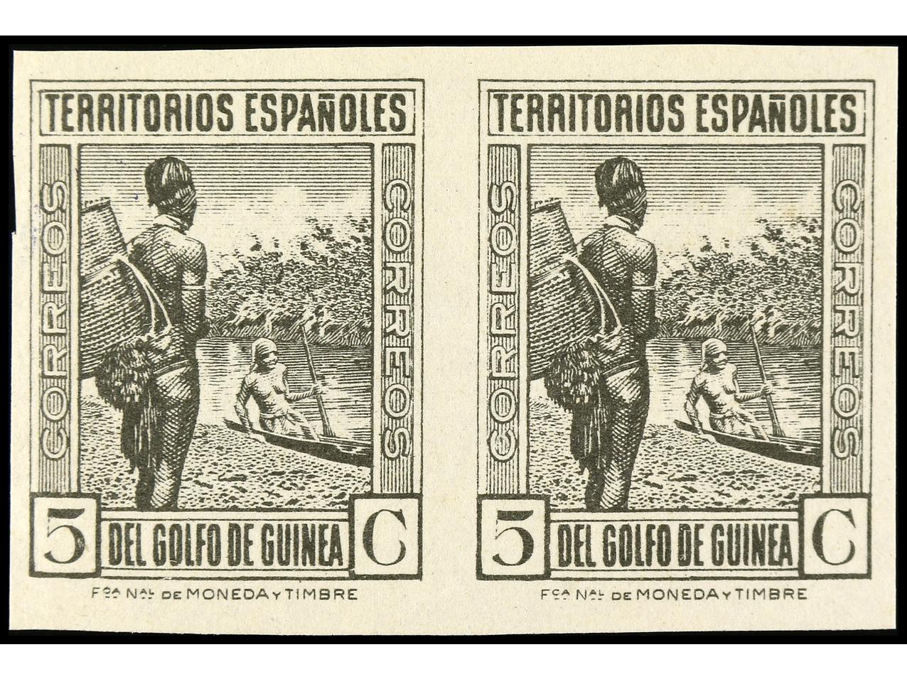 COLONIAS ESPAÑOLAS: GUINEA. 5 cts. castaño. Pareja SIN DENTAR. No reseñada. MUY RARA. Ed.264s. (Image1)
