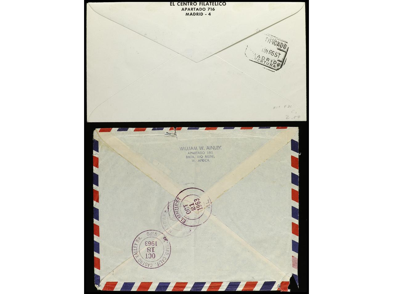 COLONIAS ESPAÑOLAS: GUINEA. 1951-63. Dos cartas circuladas desde Fernando Poo y Bata. (Image1) (Image2)