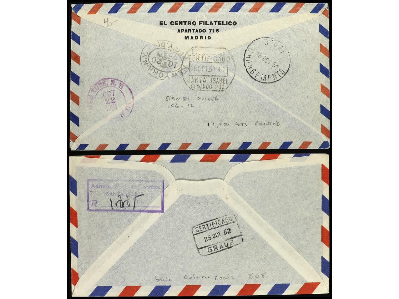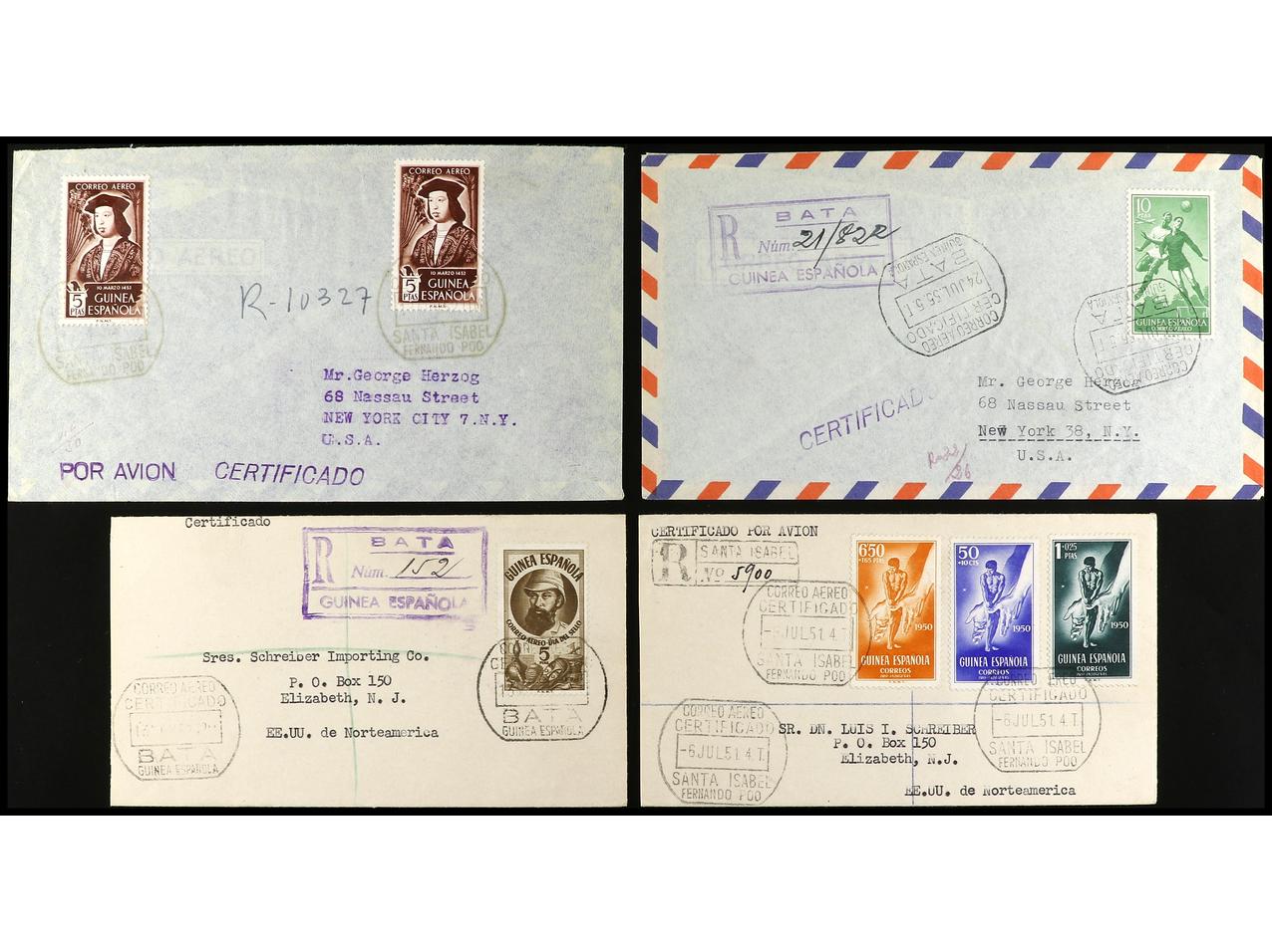 COLONIAS ESPAÑOLAS: GUINEA. 1950-55. Conjunto de 6 cartas circuladas todas con llegada. (Image1) (Image2)