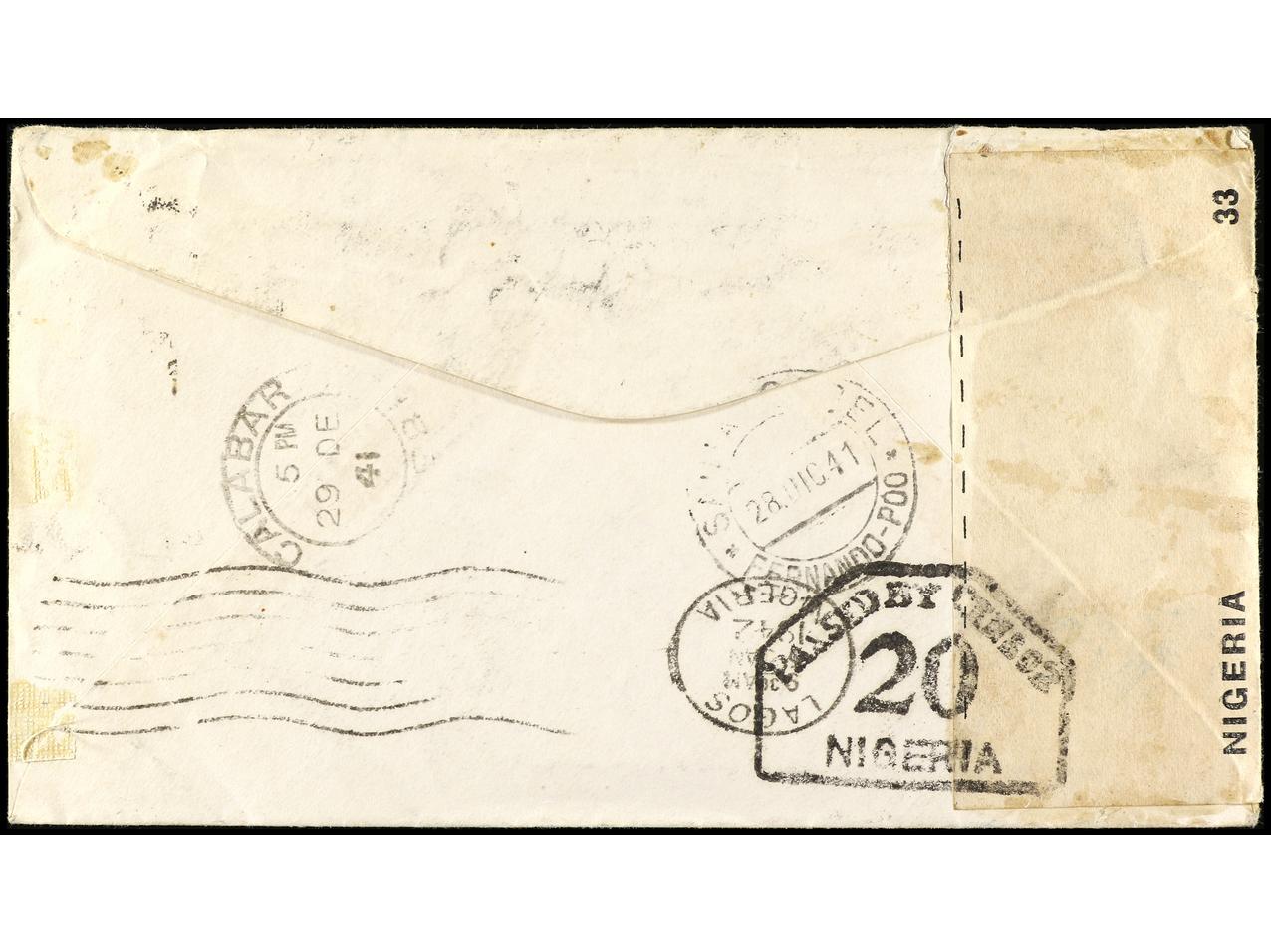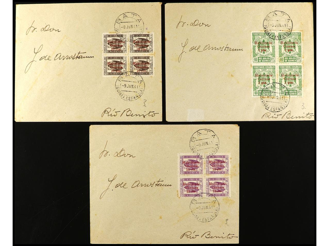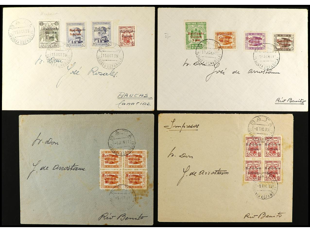 COLONIAS ESPAÑOLAS: GUINEA. 1939-41. Conjunto de 7 cartas, diversos franqueos con sellos PROVISIONALES. (Image1) (Image2)