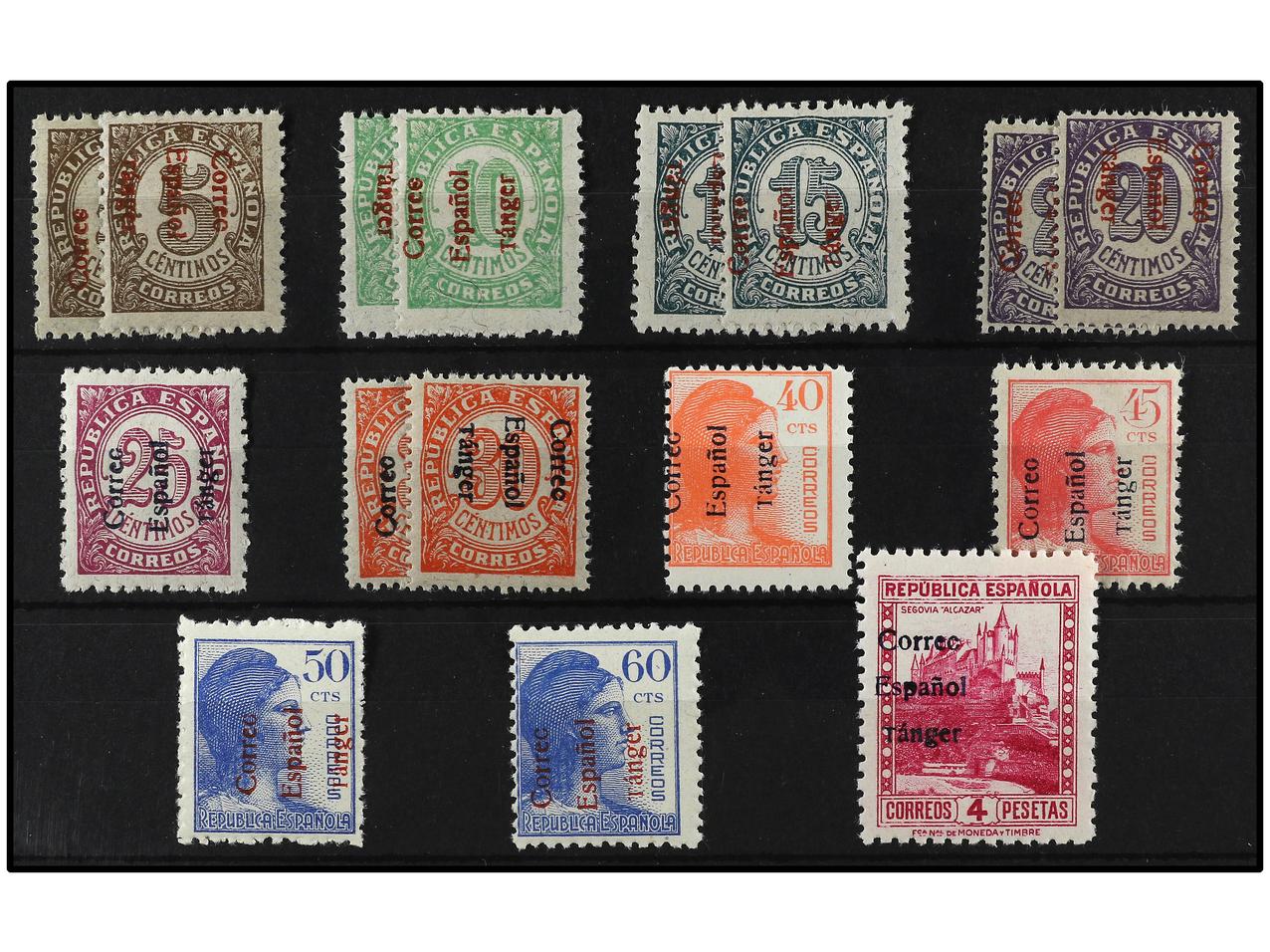 COLONIAS ESPAÑOLAS: TANGER. SERIE COMPLETA a falta del 2 pts. 16 valores incluyendo 5 con habilitación invertida. Todas variedad ´Correo´. Ed.96/105 y 107.