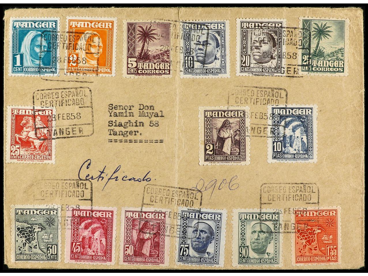 COLONIAS ESPAÑOLAS: TANGER. 1958. TÁNGER correo interior. Serie completa en carta circulada, al dorso llegada. Ed.151/65. (Image1) (Image2)