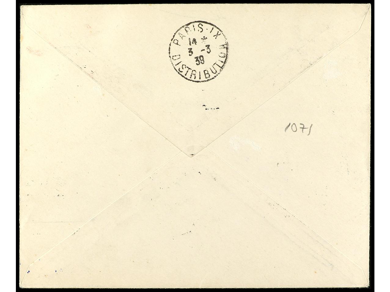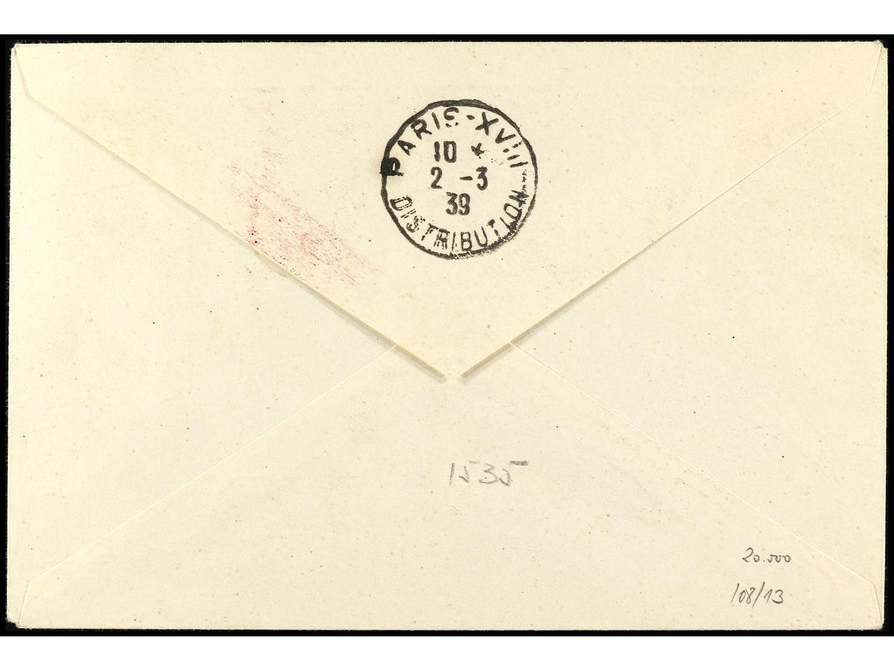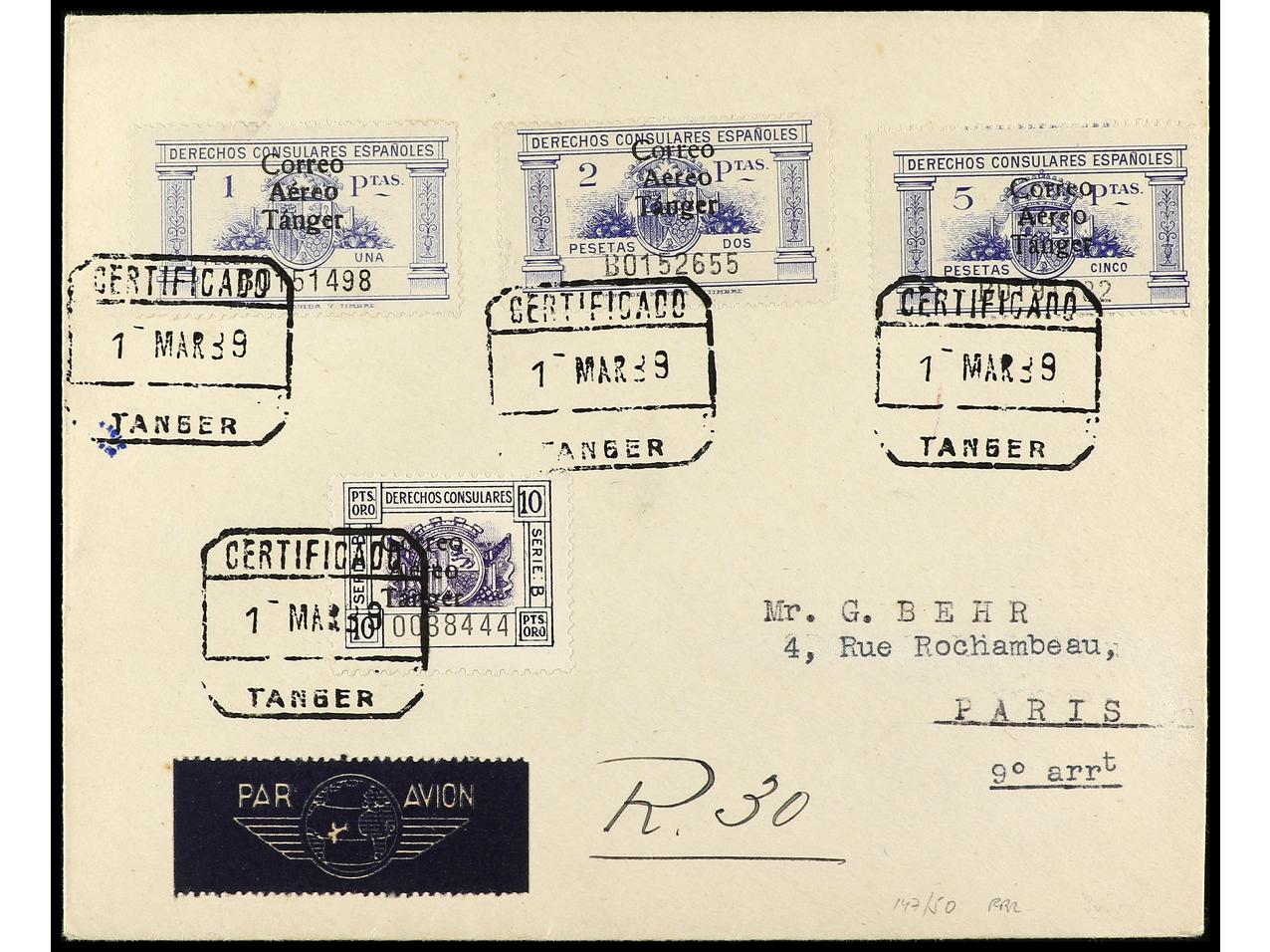 COLONIAS ESPAÑOLAS: TANGER. 1939. TÁNGER a PARÍS. Serie completa en carta circulada, al dorso llegada. Ed.108/13. (Image1) (Image2)