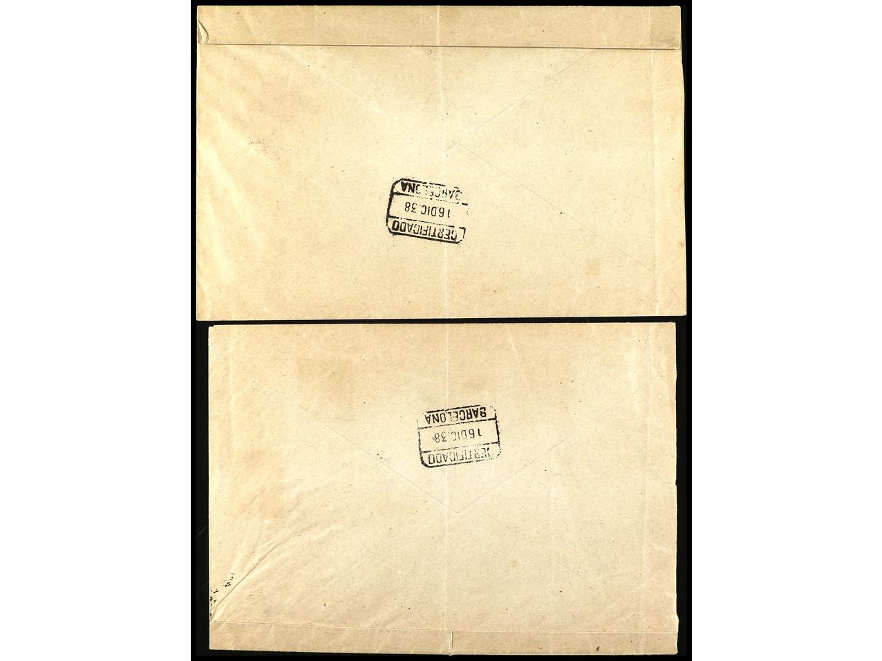 COLONIAS ESPAÑOLAS: TANGER. 1938. Dos cartas circuladas por correo certificado, al dorso llegada. (Image1) (Image2)