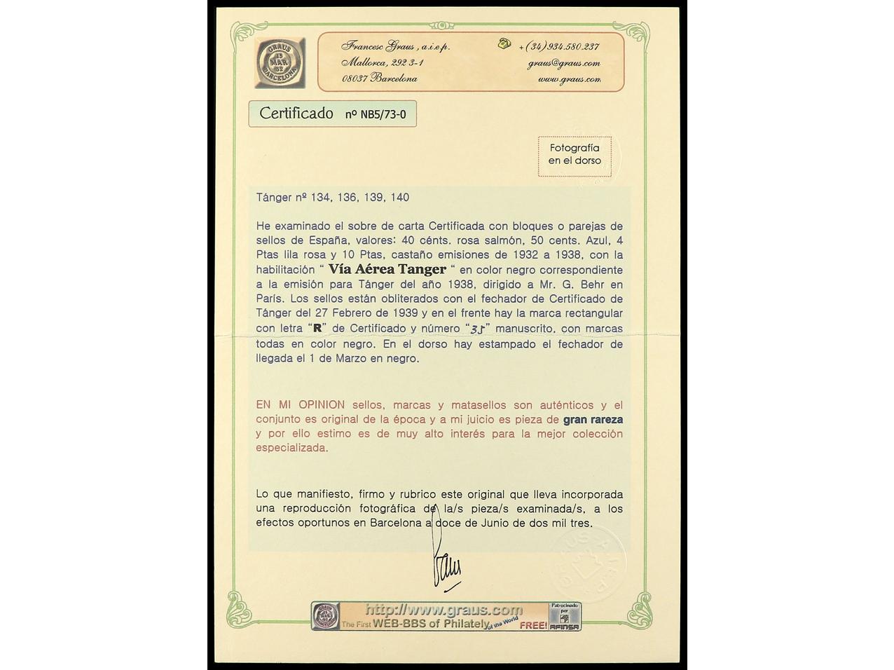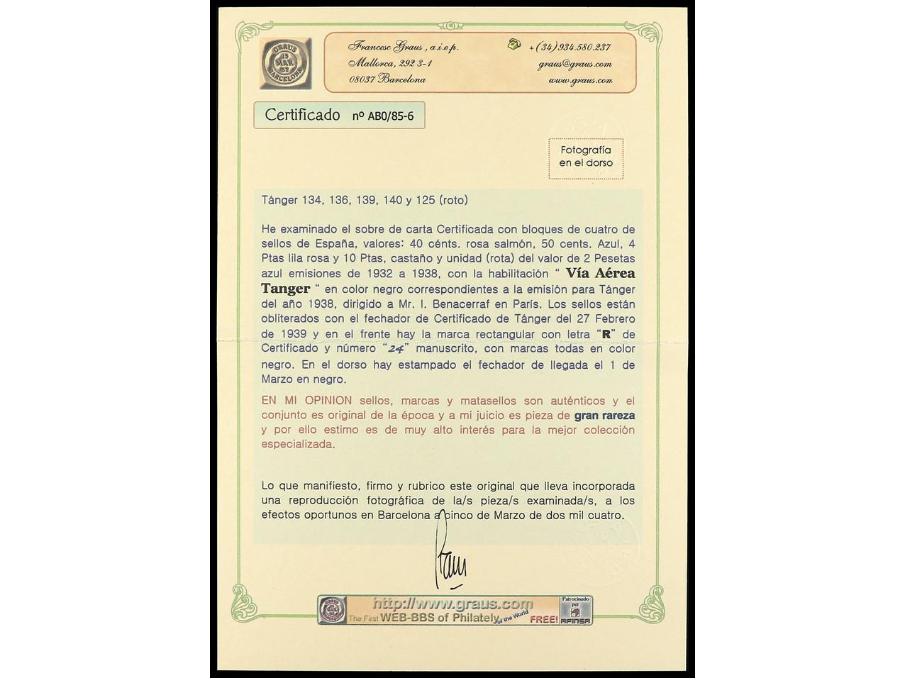 COLONIAS ESPAÑOLAS: TANGER. 1939. TÁNGER a FRANCIA. Precioso franqueo. Ed.128/39 sin 134, 136. (Image1) (Image2)