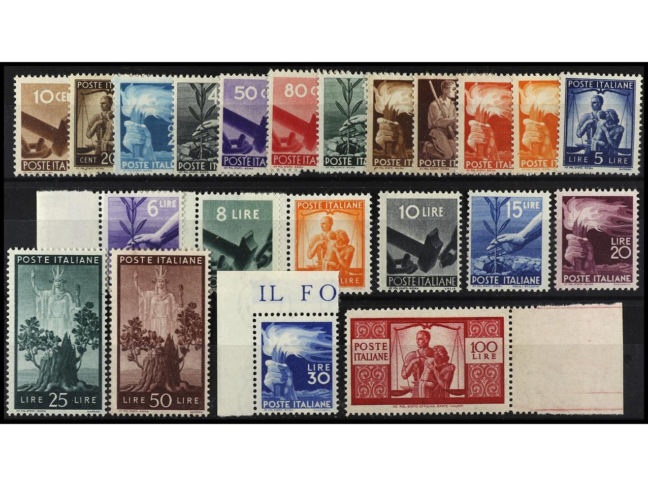 ITALIA. 1945-48. SERIE COMPLETA. Excelente centraje. LUJO. Sa.543/65. Cat. 1.350€. (Image1) (Image2)