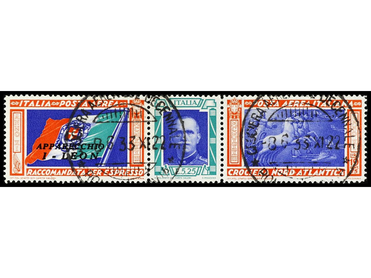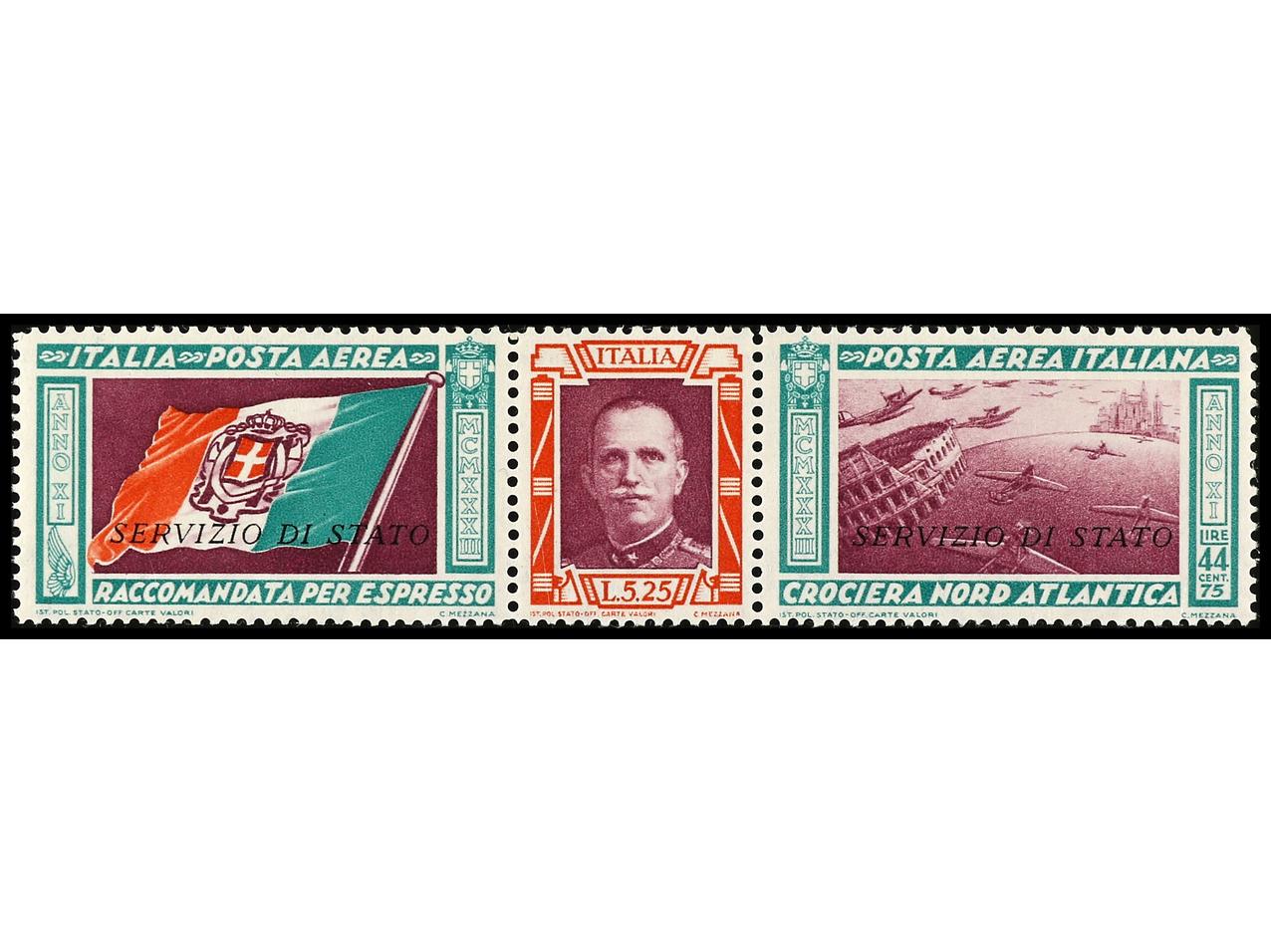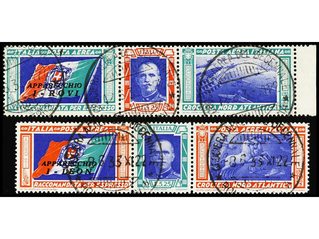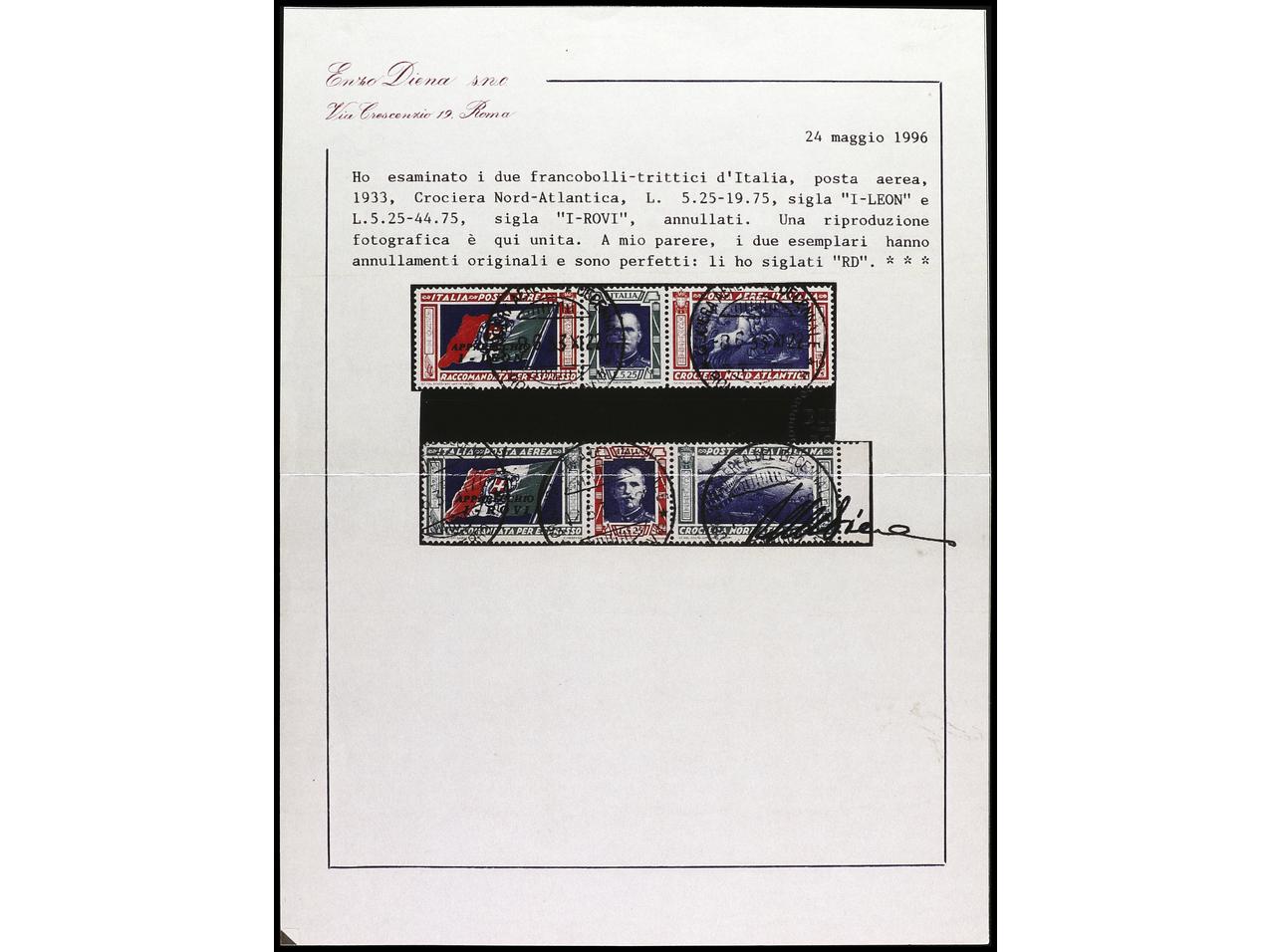 ITALIA. SERIE COMPLETA, 2 valores en trípticos. RAROS y de LUJO. Cert. SAVARESE, OLIVA, E.DIENA y TERRACHINI. Yv.Av. 48/9, Sa. P.A. 51/2. Cat. 1.800€.