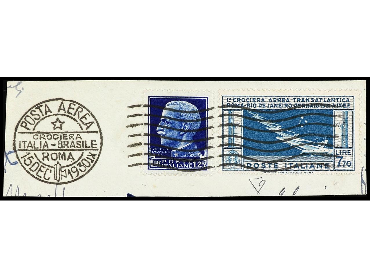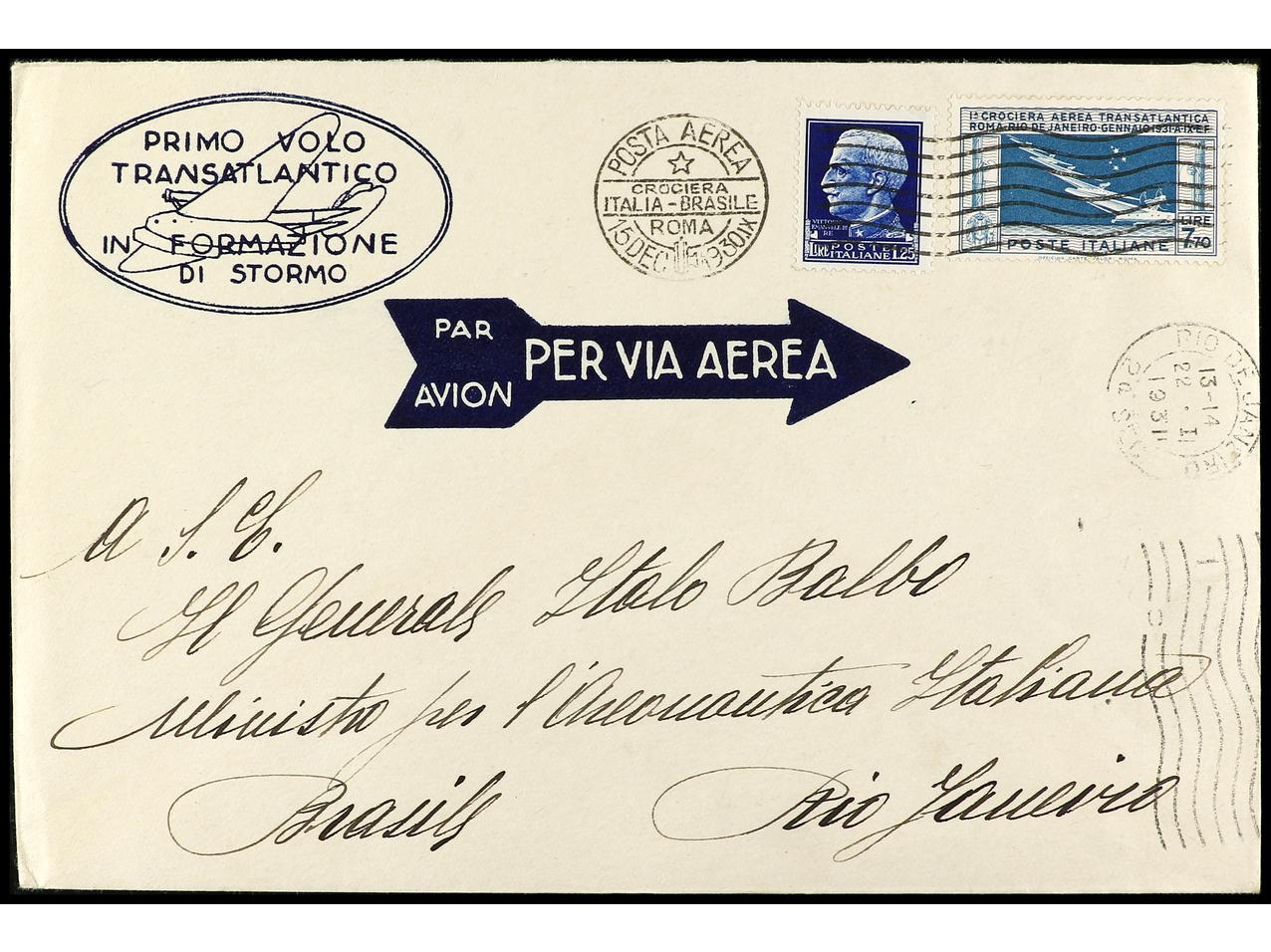 ITALIA. 1930. ROMA a RIO DE JANEIRO. 7,70€ liras azul en carta circulada, marca especial del vuelo, llegada en el frente. Sa.A25. (Image1) (Image2)