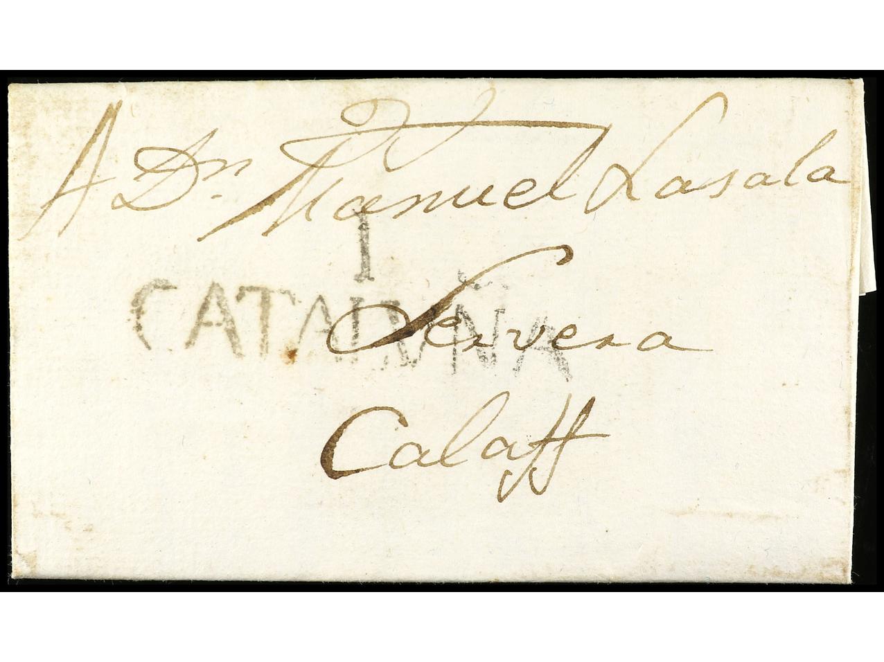 ESPAÑA: PREFILATELIA. 1800. IGUALADA a CALAF. Marca I/CATALUÑA. (Image1) (Image2)