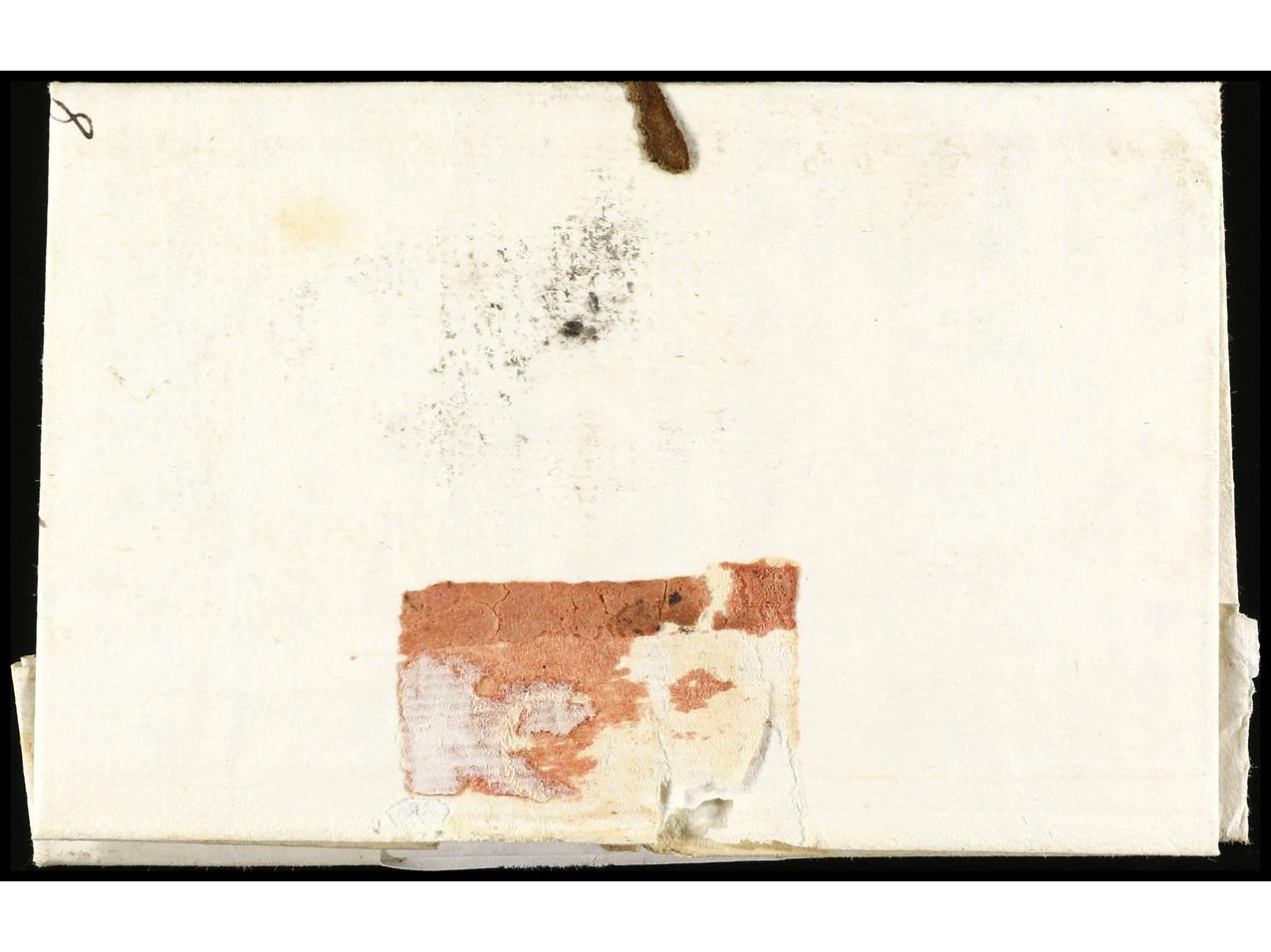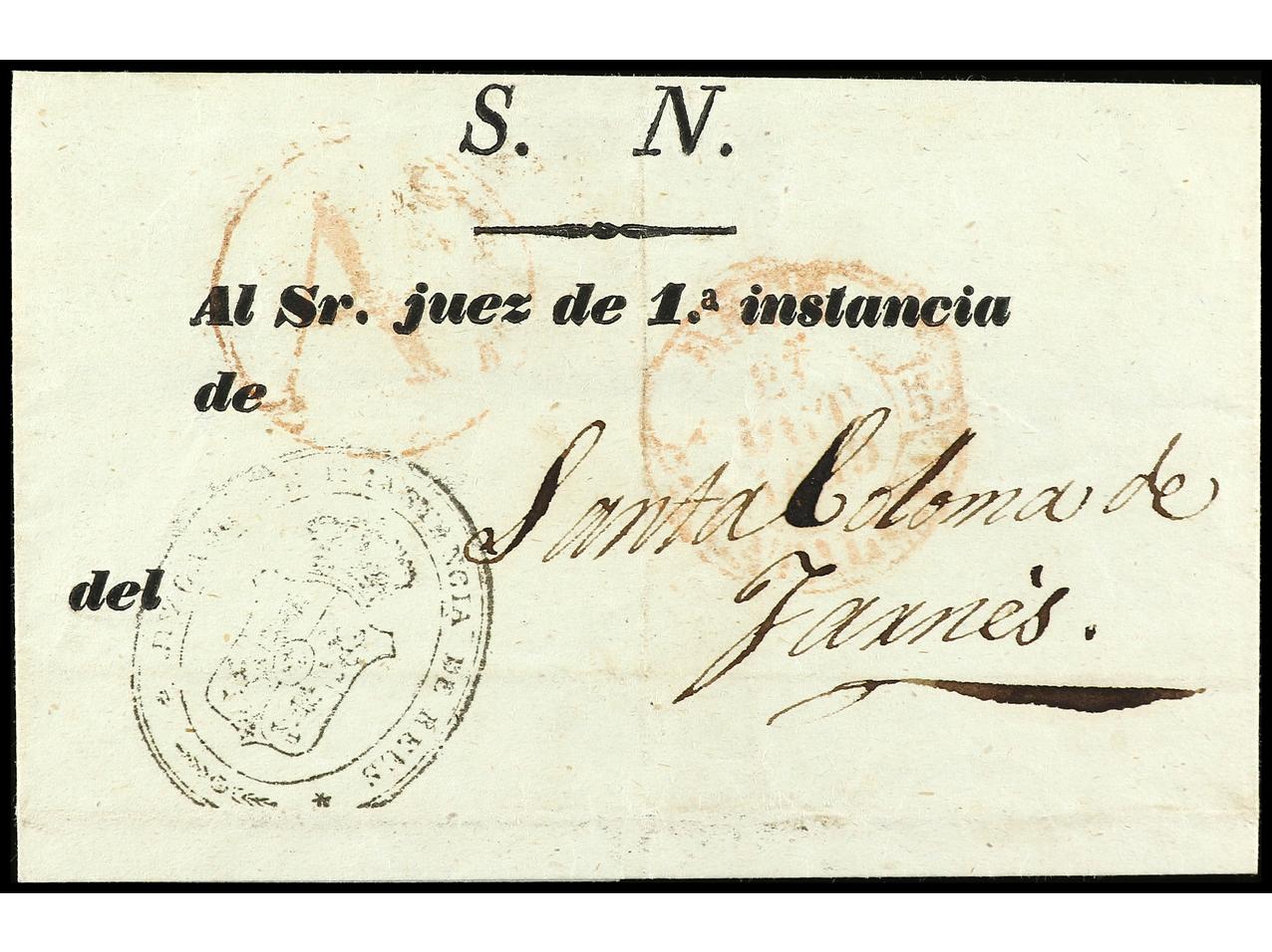 ESPAÑA: PREFILATELIA. 1845. REUS. Envuelta a STA. COLOMA DE FARNÉS. Marca AS (P.E. 19) de Abono de REUS en rojo. RARA. (Image1) (Image2)