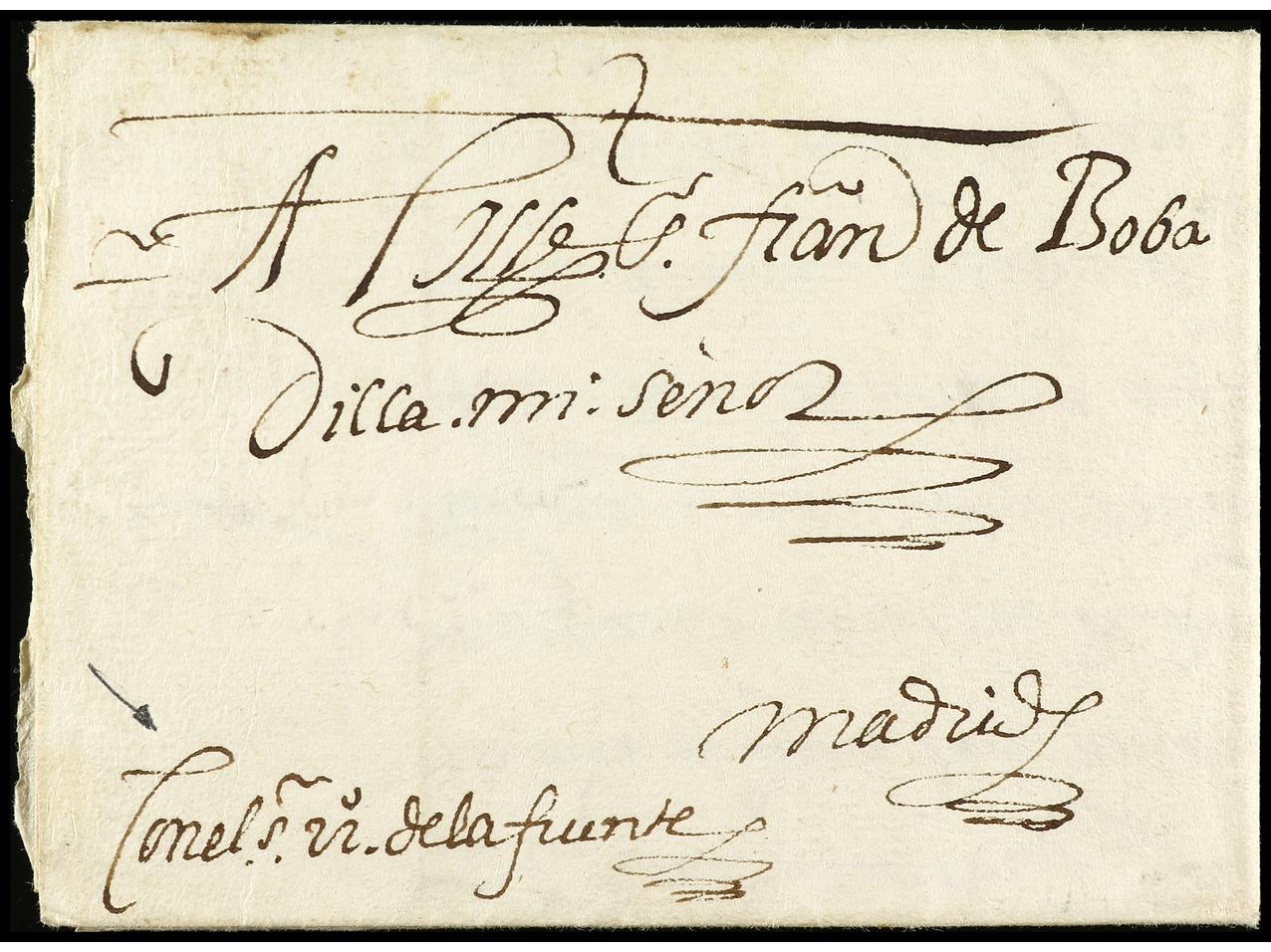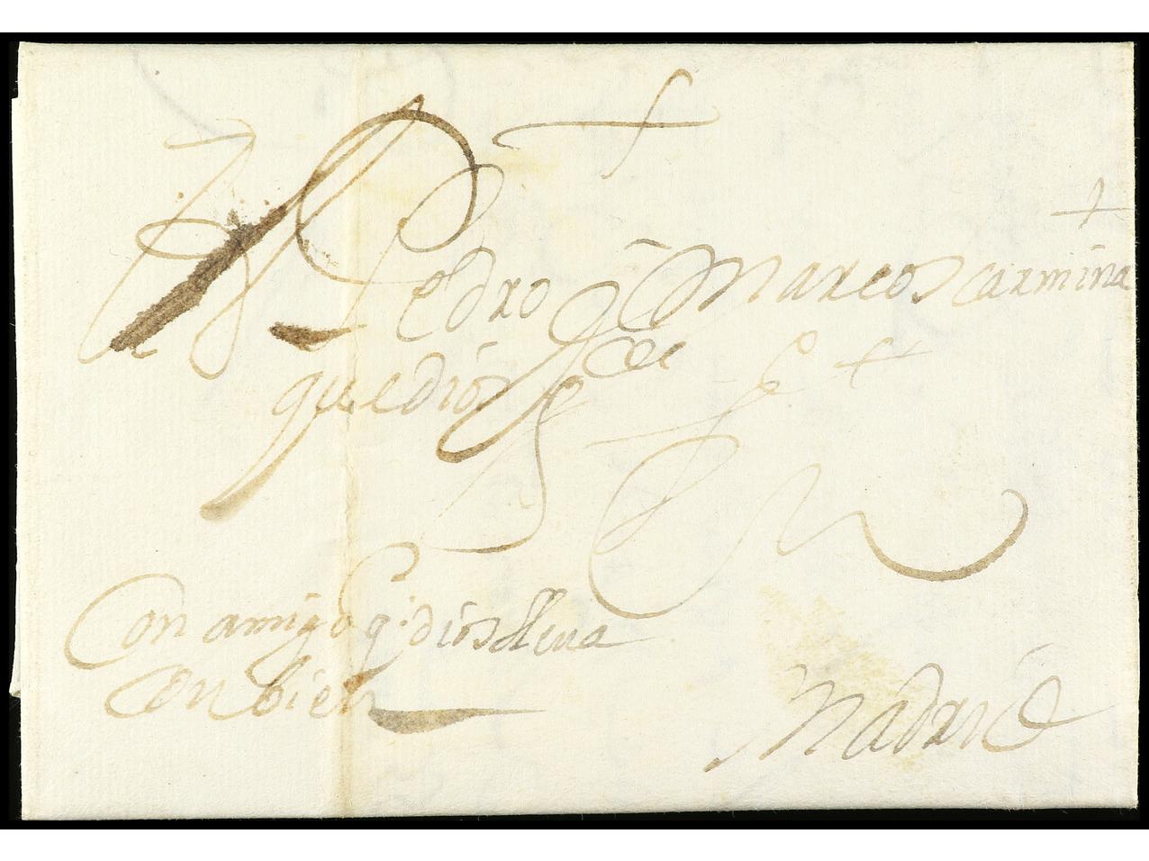 ESPAÑA: PREFILATELIA. 1655. TOLEDO a MADRID. Carta completa con texto, manuscrito ´con amigo que Dios lleva con bien´. (Image1) (Image2)
