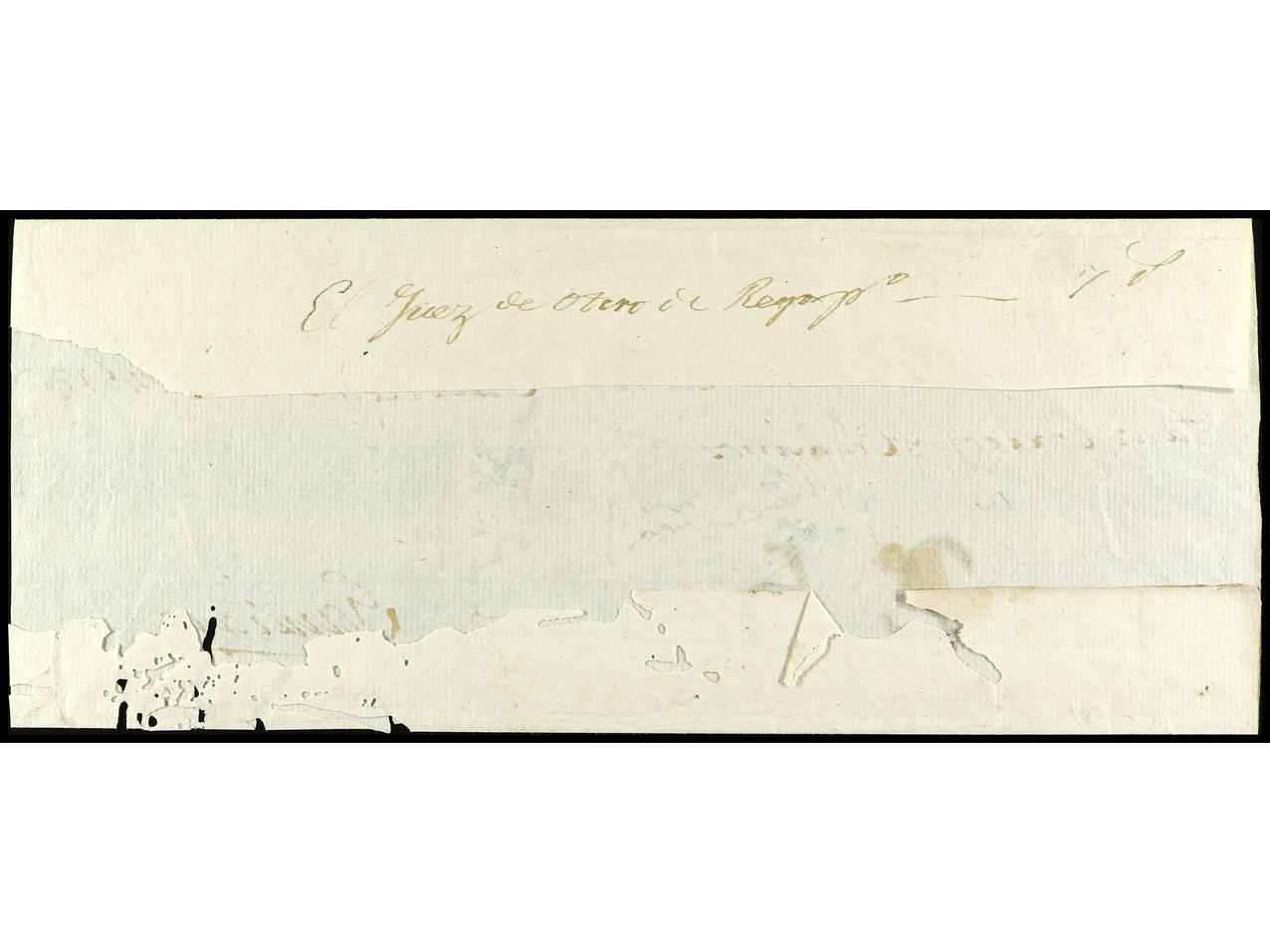 ESPAÑA: PREFILATELIA. LUGO. Frontal con parte de solapas, a SANTIAGO (P.E. 13). Manuscrito ´CERTIFICACION A LUGO 31 AGto 1828´ (la misma ilustrada en el catálogo M. Tizón). EXTREMA RAREZA. (Image1) (Image2)