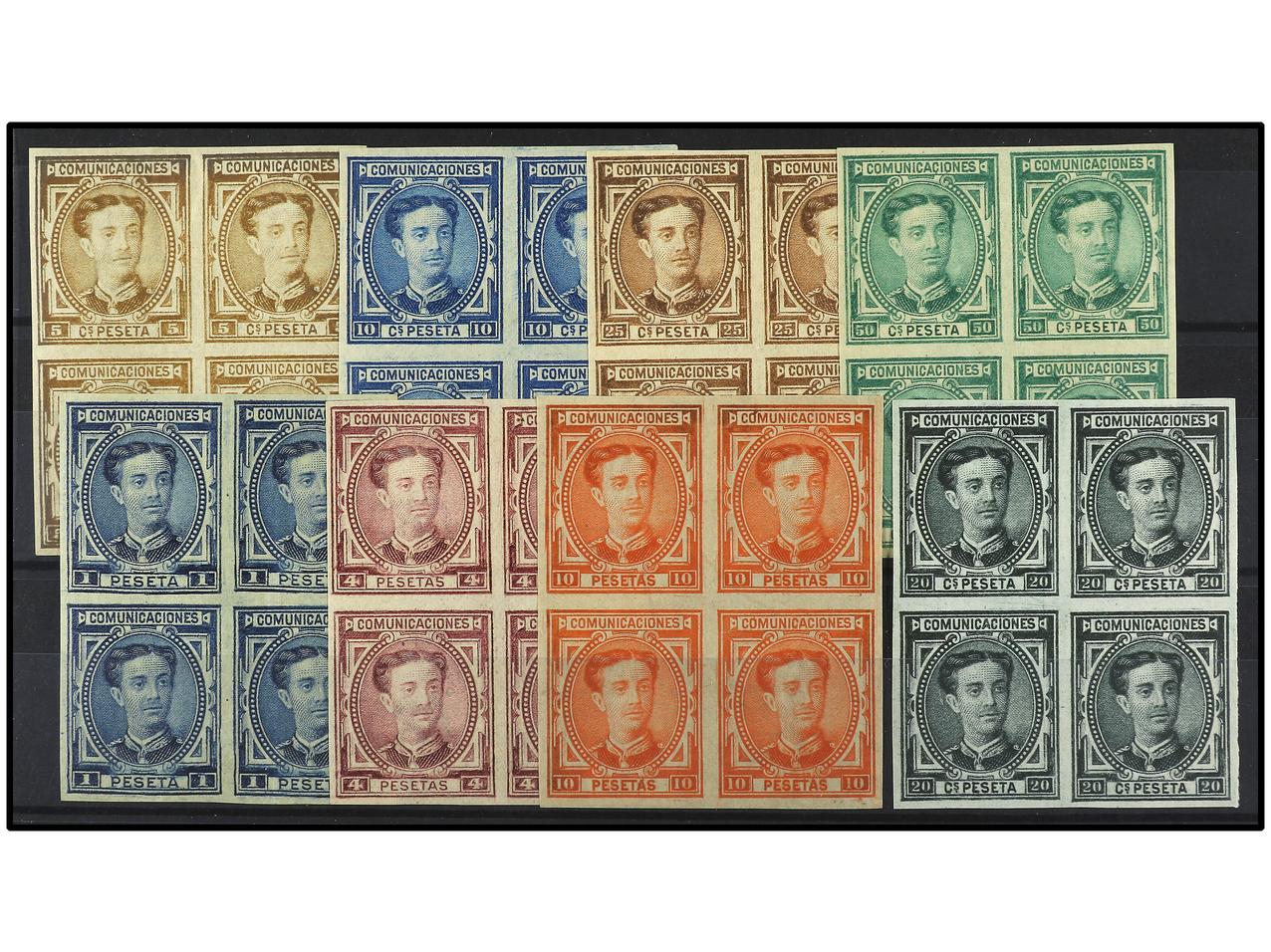 ESPAÑA. SERIE COMPLETA SIN DENTAR en bloques de cuatro. RARA y de LUJO. Ed.174/82As. Cat. 6.500€. (Image1) (Image2)