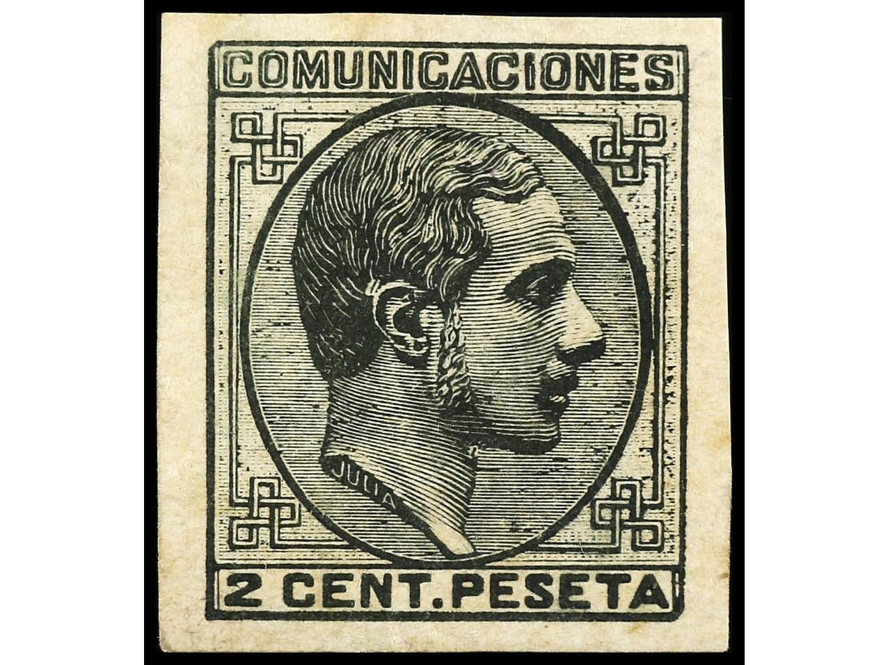 ESPAÑA. 2 cts. negro. ERROR DE COLOR SIN DENTAR. Amplios márgenes. Ed.190ecs. Cat. 85€. (Image1)