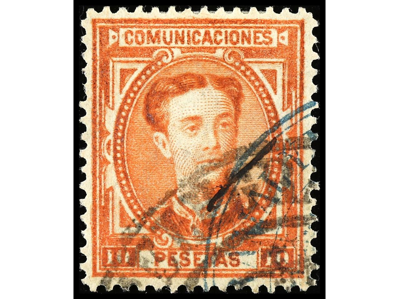 ESPAÑA. 10 pts. naranja, mat. circular de uso administrativo, excelente centraje. Sello muy raro en usado especialmente en esta calidad. LUJO. Ed.182. Cat. 260€. (Image1)